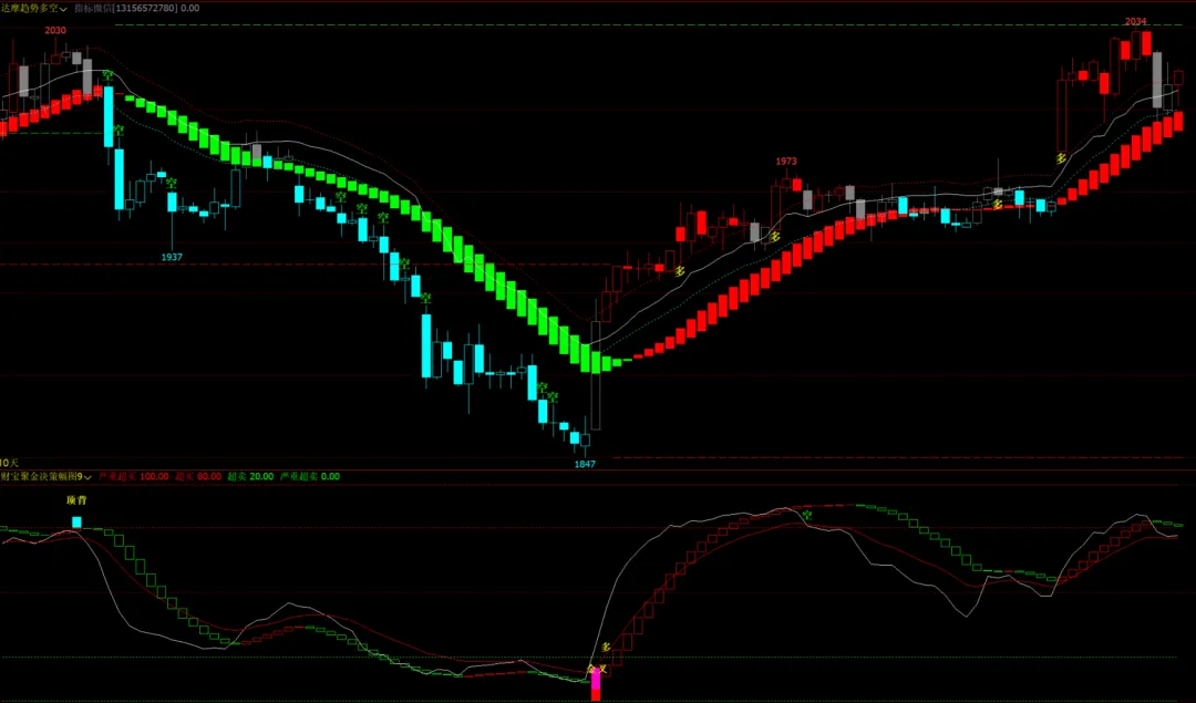 3、达摩趋势多空主图,财宝聚金决策幅图