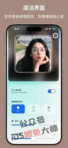 【Glasscape – 液态玻璃壁纸】一款可以制作出液态玻璃、空间效果及3D效果的壁纸软件,内置了多种风格选项,可以设置圆角大小、背景模糊,最后保存到相册中。