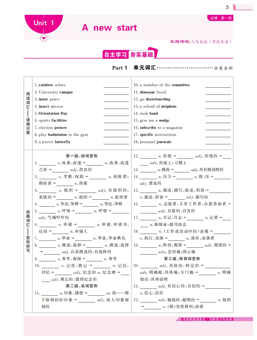 2023版世纪金榜高中全程复习方略新高考英语核心知识自查学案