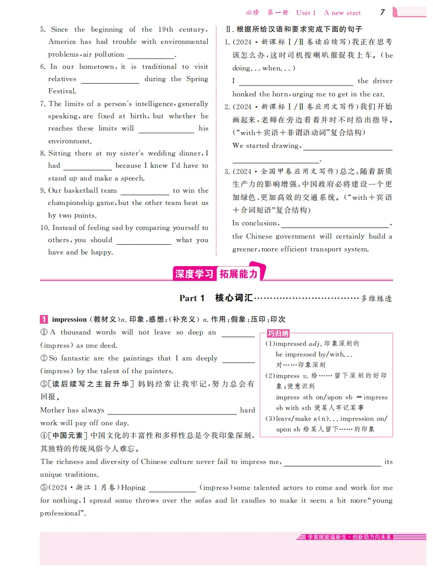 2024版高考英语255个句子囊括高中80%的单词和全部语法