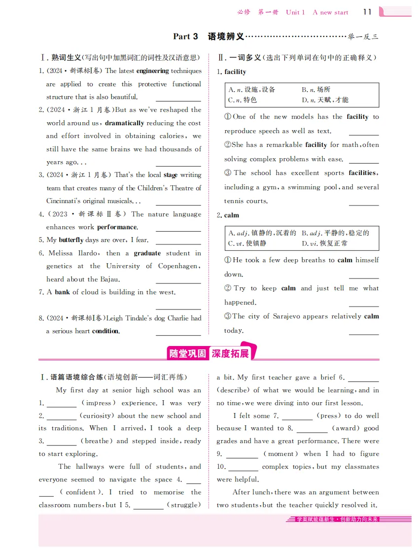 2023-2024学年高一英语人教版(2019)必修第一册词汇专项合订本