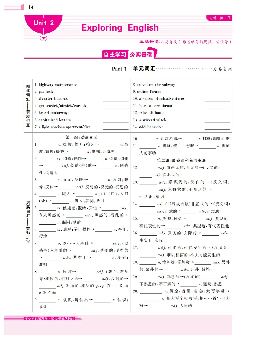 2023-2024届人教2019版英语必修第一册思维突破合订本(共68页word版)