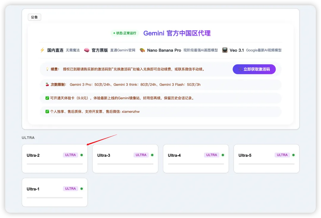 AI平台 国内直接访问地址:https://gemini.xiaoxuzhu.cn/ 【输入授权码】登录【选择空闲的车,点击进入】