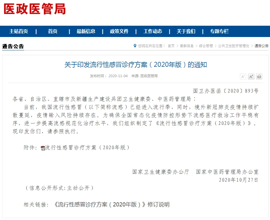 WORD版丨《流行性感冒诊疗方案(2020年版)》刚刚发布