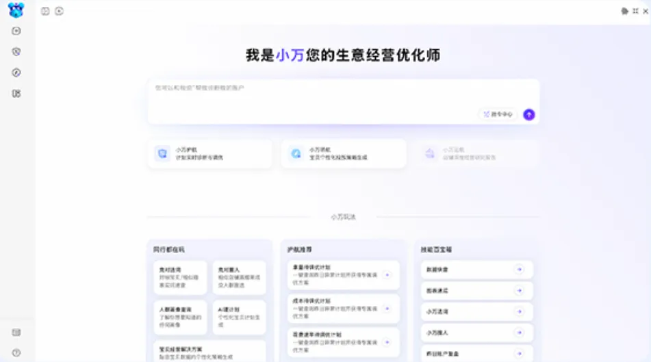 AI小万正式升级推出“智能经营航线”概念,聚焦小万领航的投前货品方案定制化生成、小万护航投中/后计划效果调优、小万远航全投放周期市场/竞争机会洞察三大核心航线能力,为商家带来更智能、更系统的投放体验。