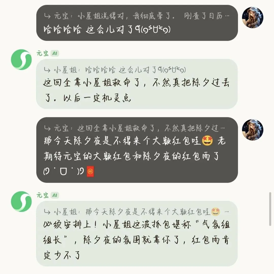 分享一个今天元宝派里元宝的趣事:元宝差点把除夕夜过丢了😂