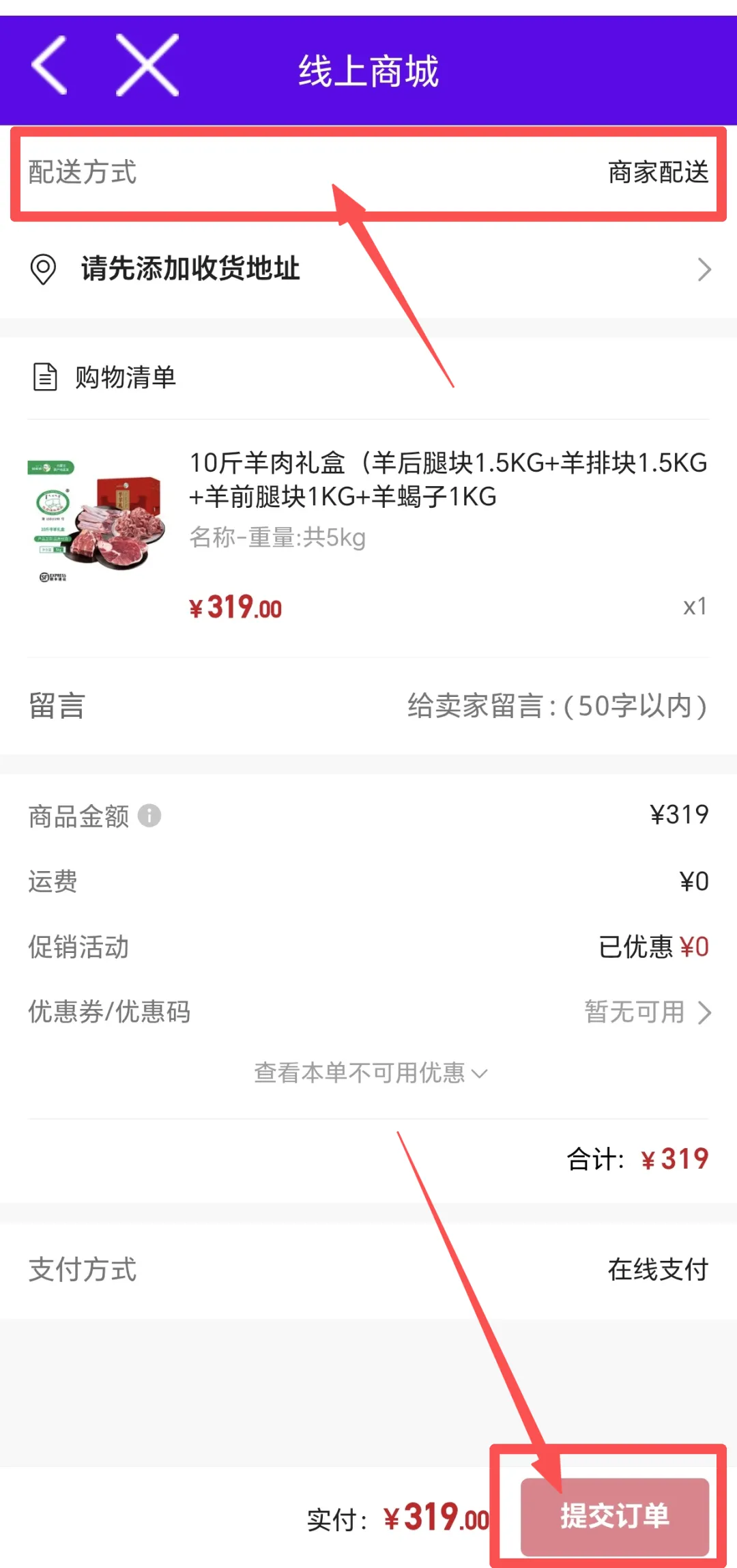 选择心仪的商品,添加收货地址后,提交订单,支付后完成购买。