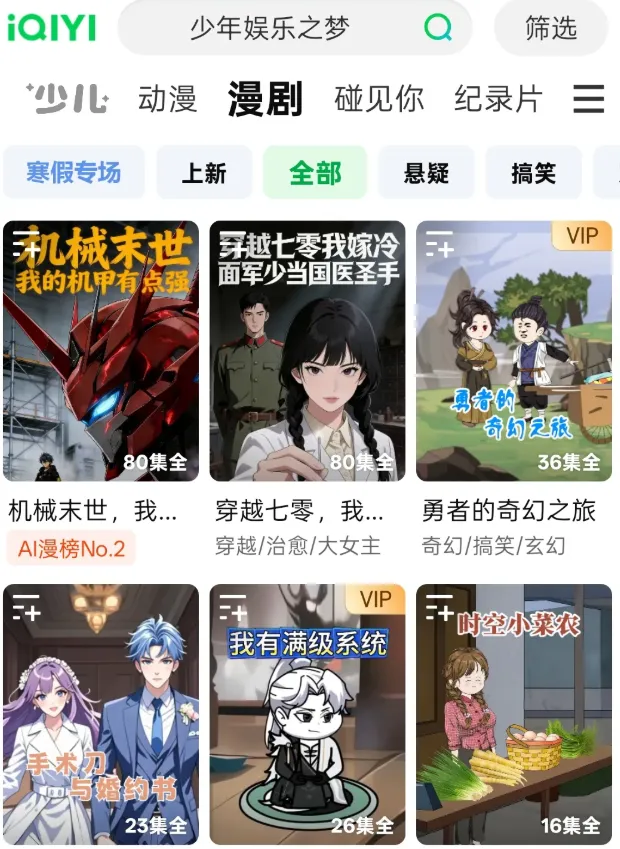 爱奇艺:2025 年 11 月上线漫剧频道,主打玄幻、仙侠、逆袭等主流题材,并重点发力女频内容。