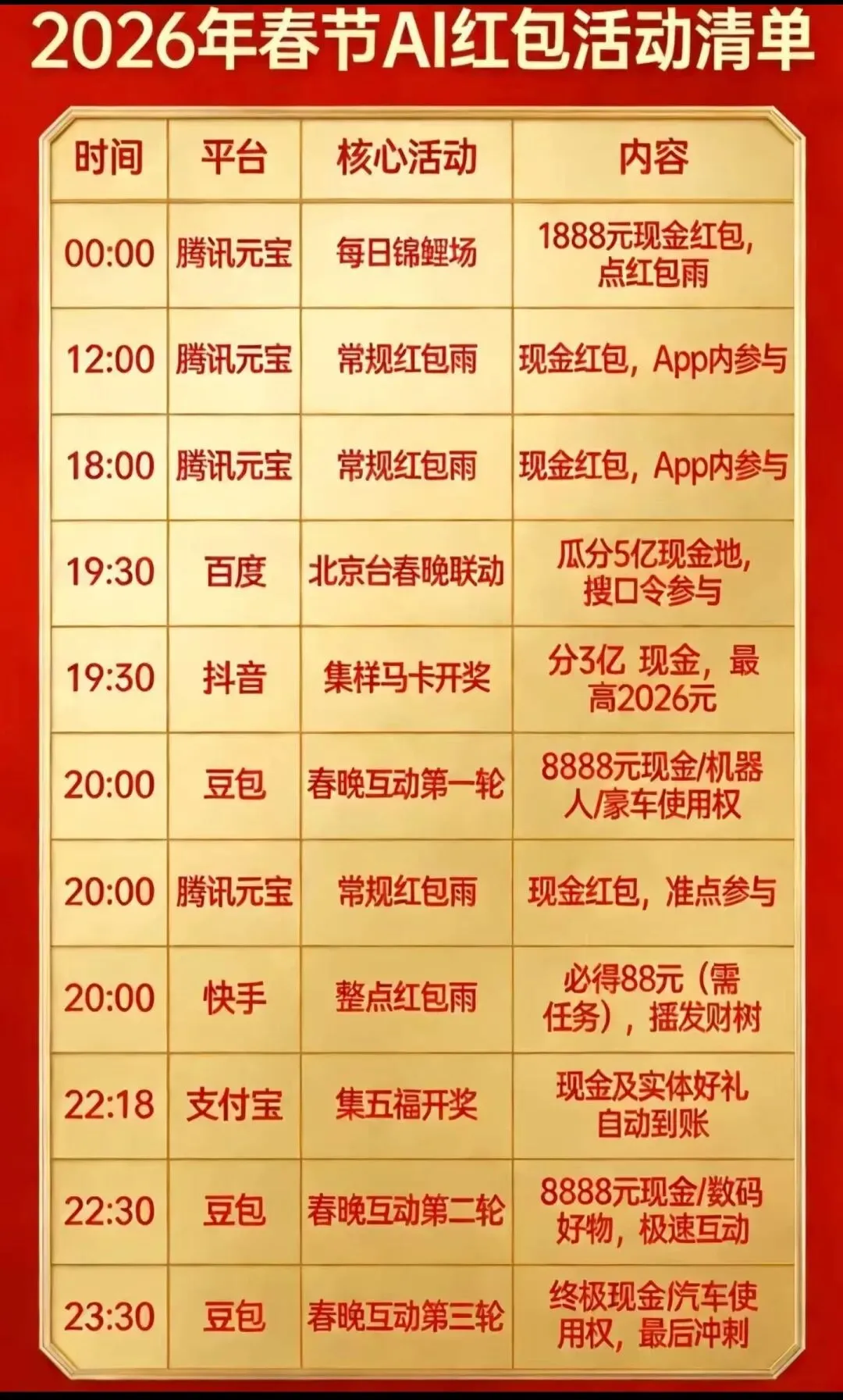 2026大厂红包终极指南:11款App、除夕黄金4小时
