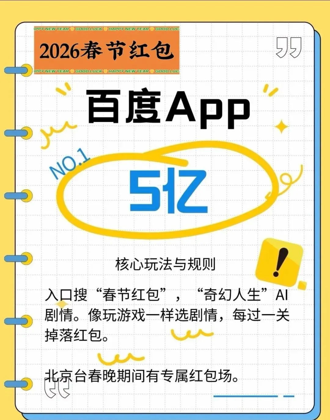 抢法:搜「春节红包」→ 参与「奇幻人生」AI互动、集人生卡