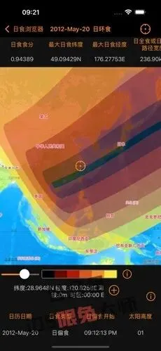 【日月食地图】一款覆盖1999年至3000年间的日食和月食数据,允许用户查询5000年内任意一次日食或月食的发生时间及类型。