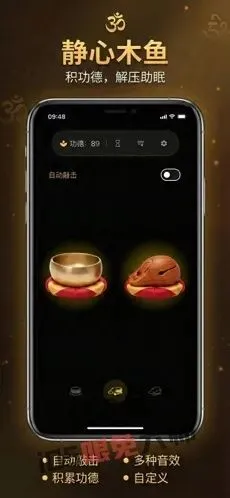 【电子木鱼 – 静心积功德】一款专为冥想练习设计的辅助应用,带您通过传统的木鱼声重获内心的宁静。