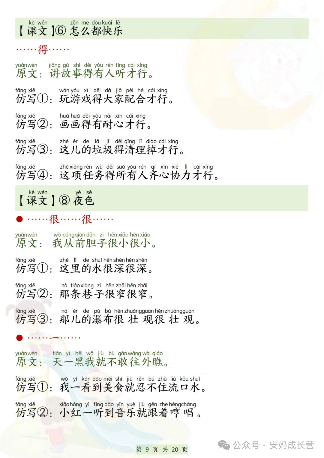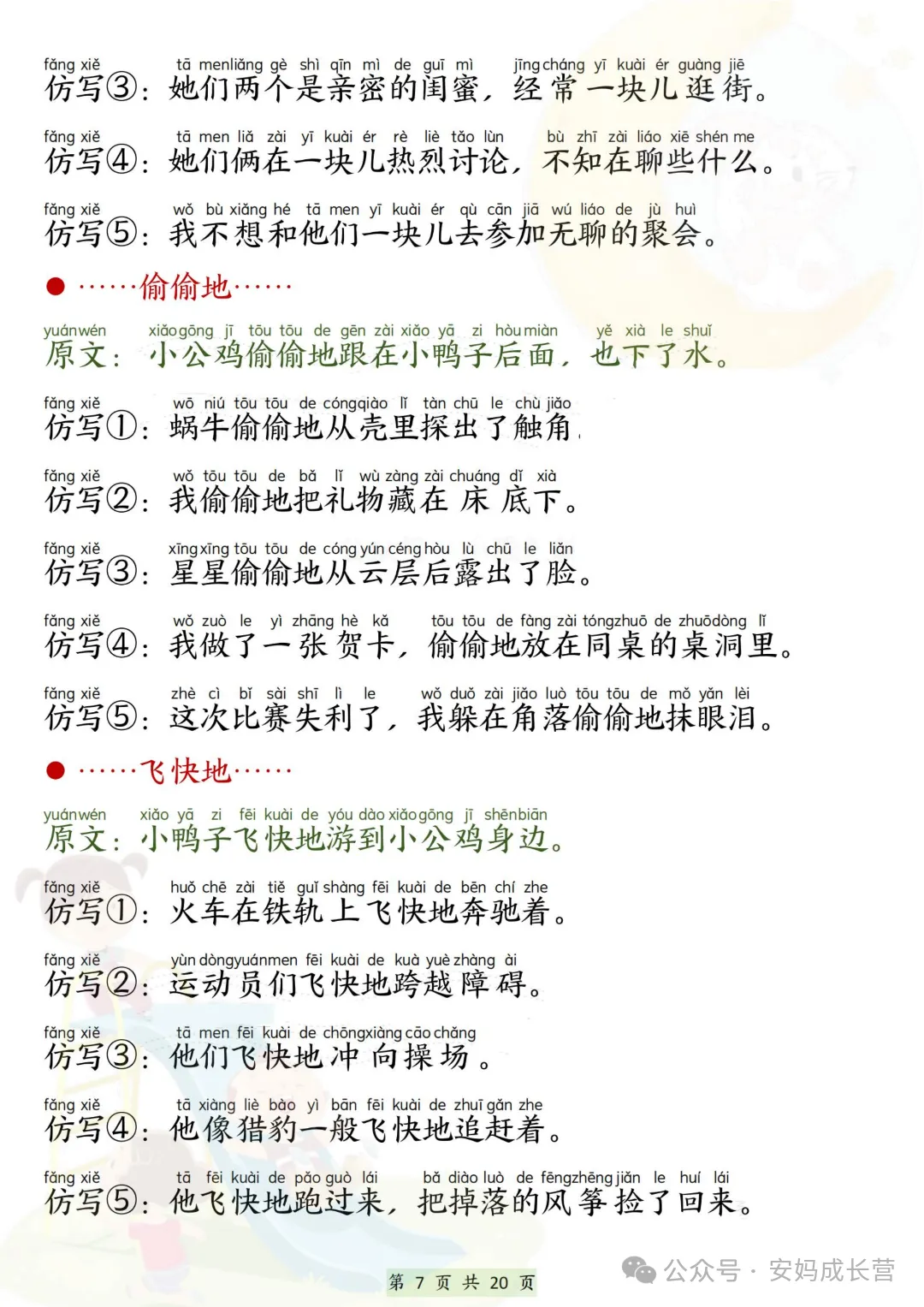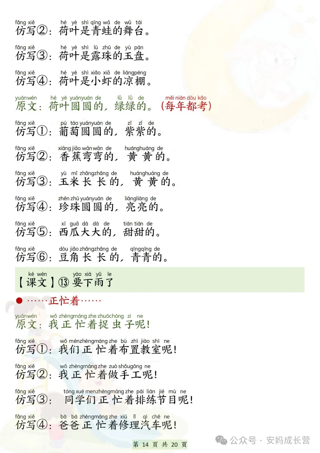 新版一年级下册语文《每课仿写句子汇总》,电子版可打印