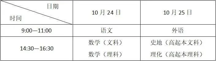 高起本、专科(高职)考试时间表