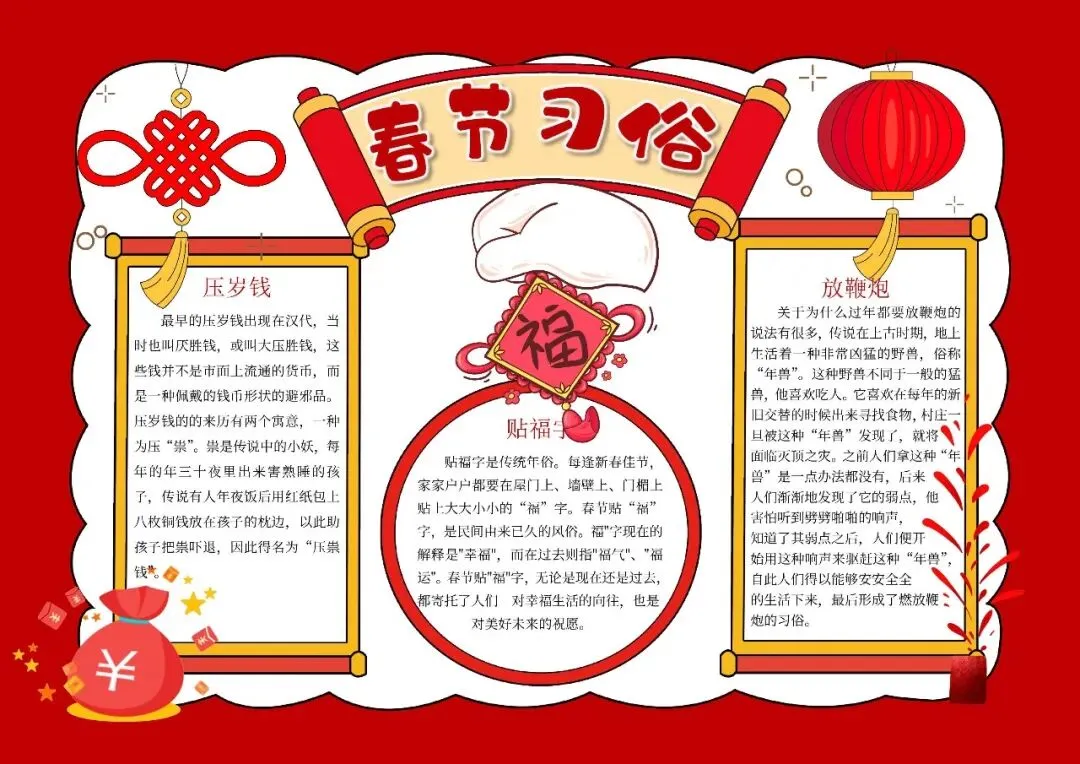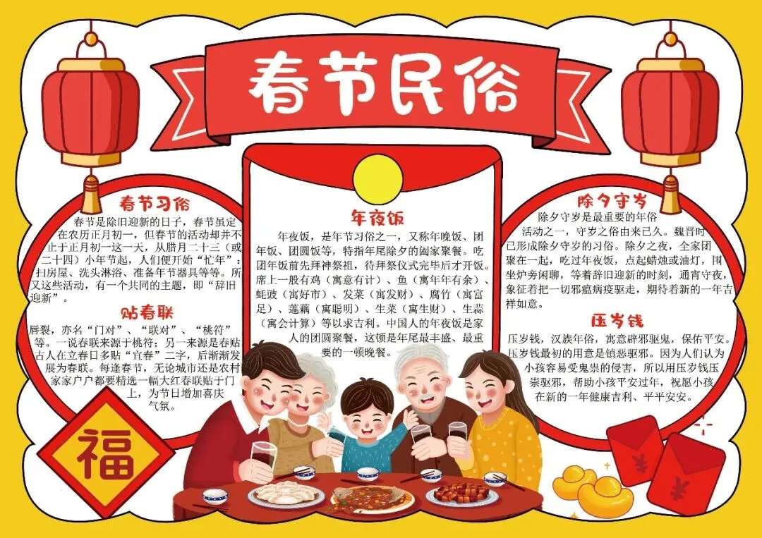 精美的手抄报模板不仅能美化假期作业,更能让孩子在创作过程中深入了解春节文化。欢迎通过下方通道获取完整资源。