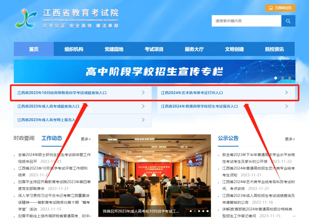 江西省2023年10月份高等教育自学考试成绩查询入口