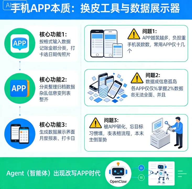 就在我们被这些问题困扰,却又无力改变时,Agent(智能体)出现了——而OpenClaw的爆火,恰恰标志着:APP的时代,要被彻底改写了。
