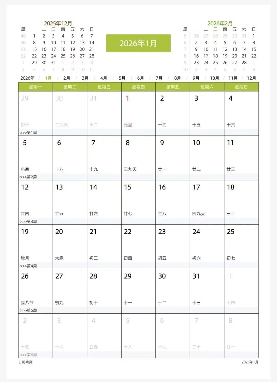 2026年日历