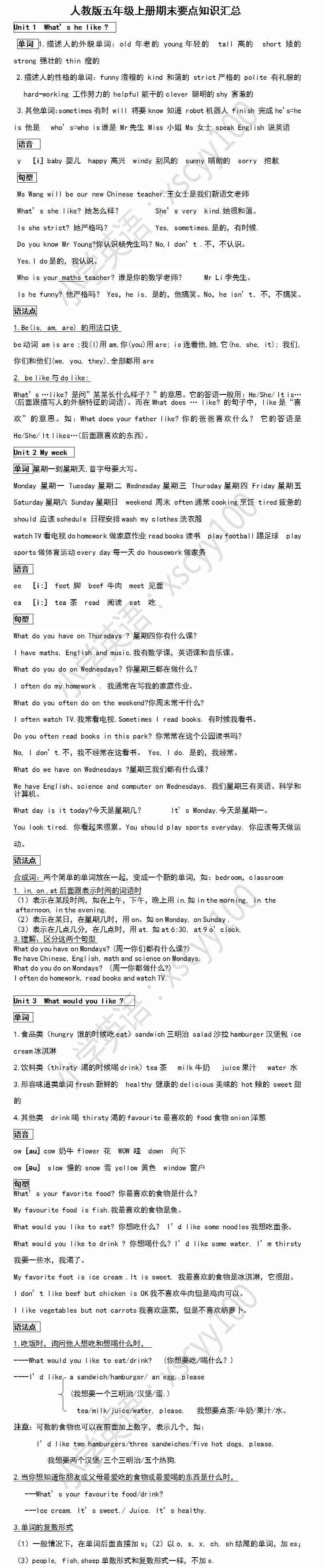 嗯,小英今天要和大家分享人教pep五年级期末复习知识点汇总和期末测试题,另附各单元要点练习及答案哦~