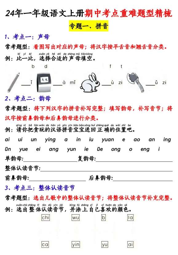 本站文章均为手工撰写未经允许谢绝转载:夜雨聆风 » 一年级语文(上)《期中高频考点》丨可打印