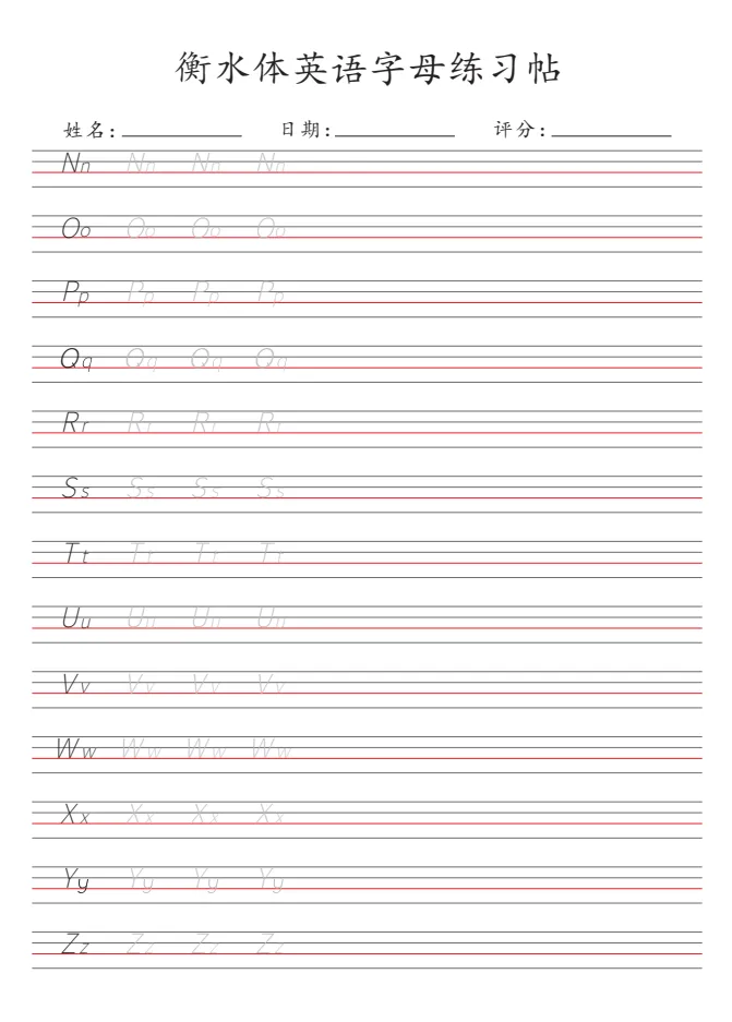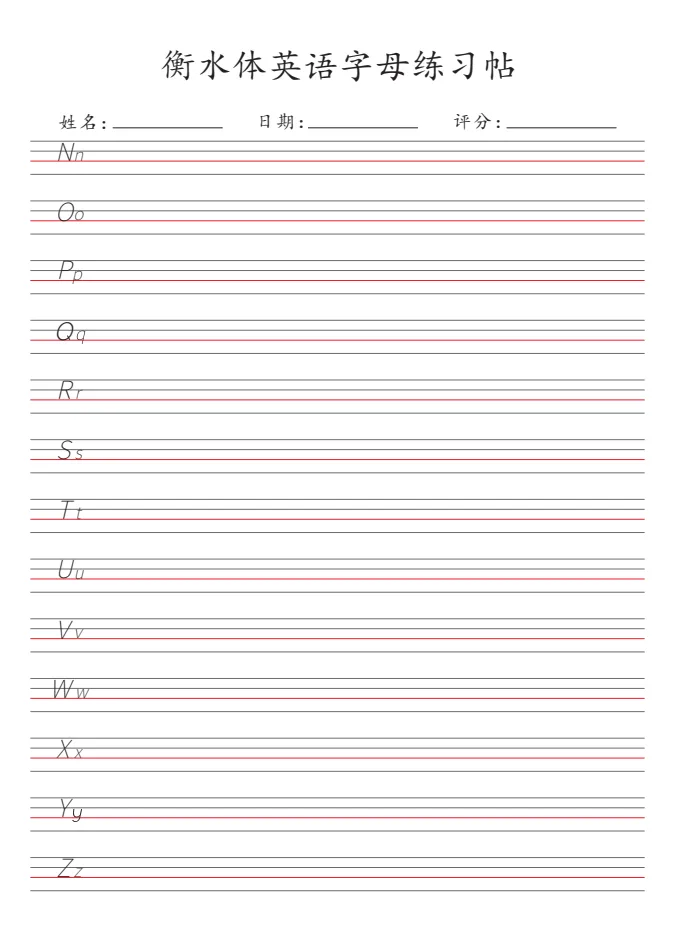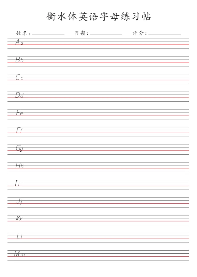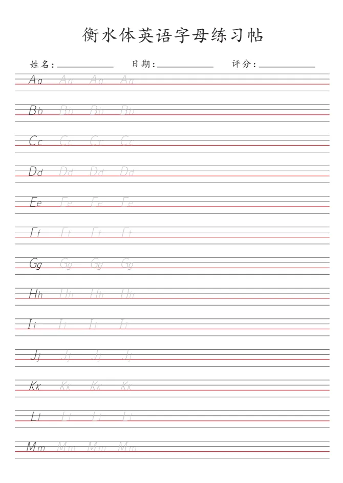 《衡水体26个英语字母练习帖》|可打印