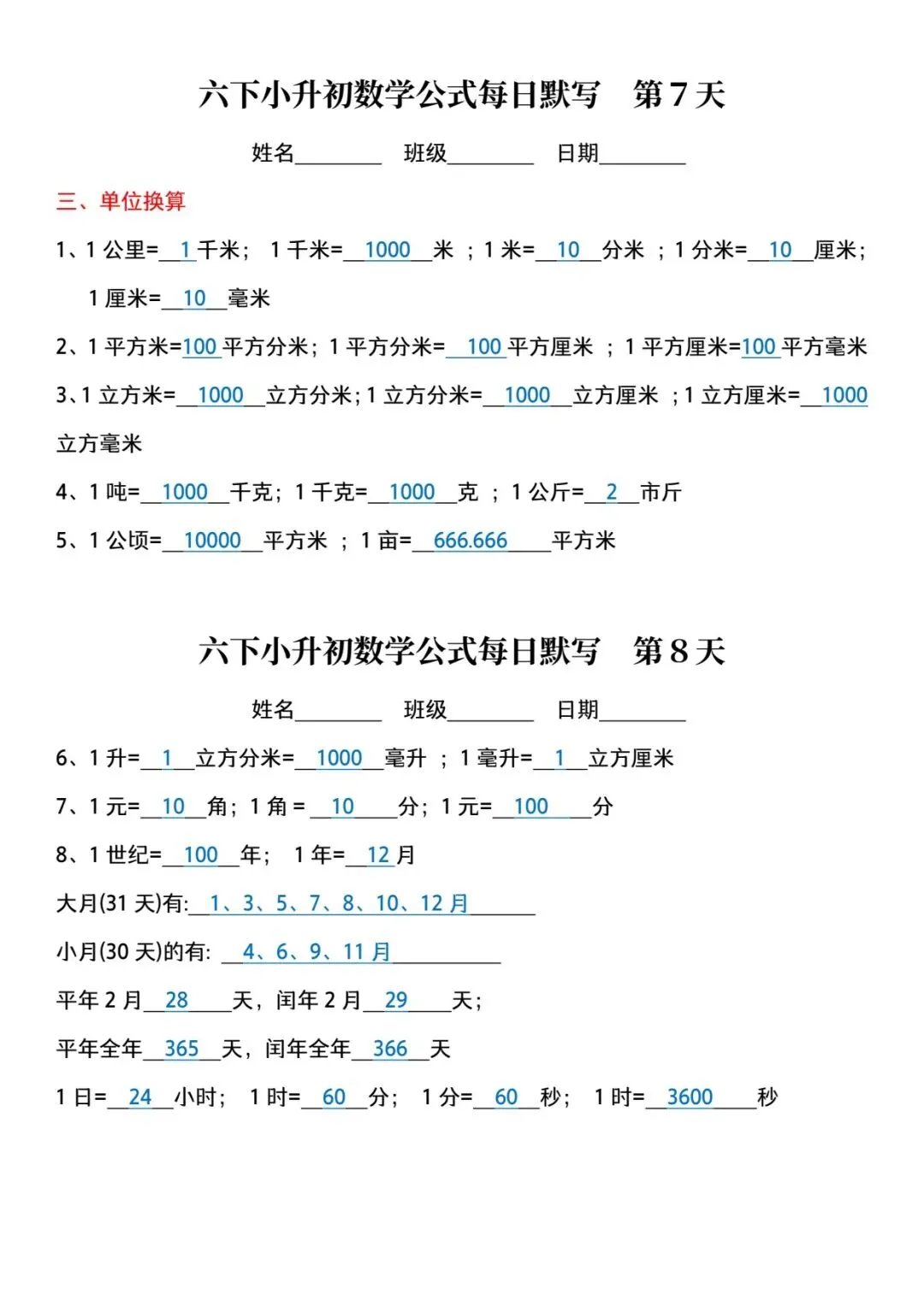 数学六年级下册《每日计算小纸条》(可下载打印)