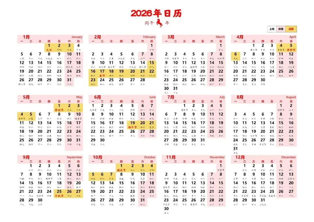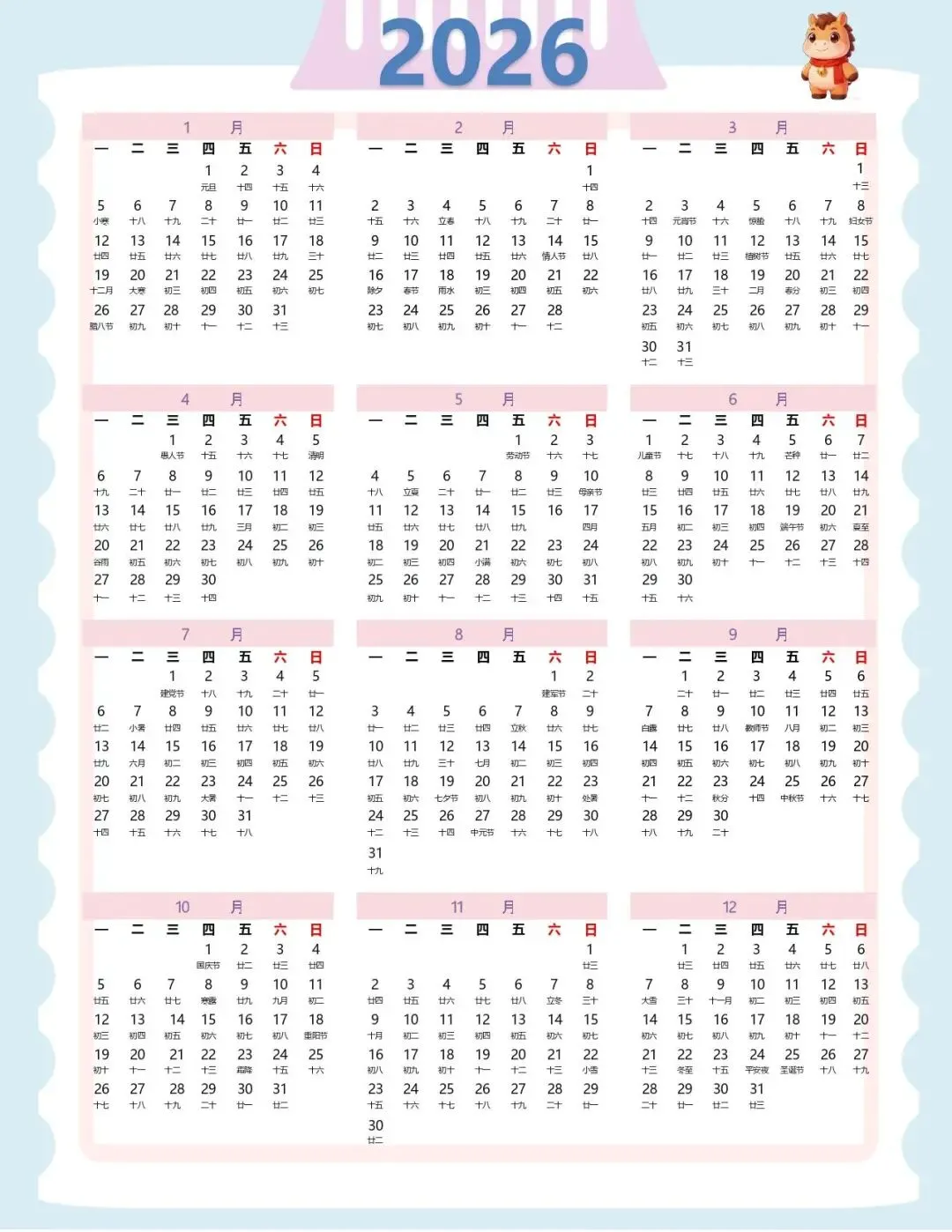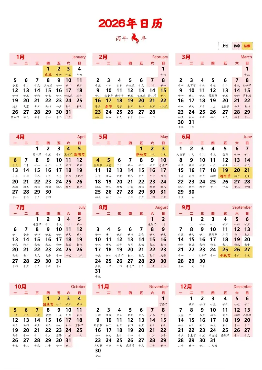 2026年马上就到啦!给大家分享一下26年最新的日历/月历/年历高清电子版!包括常用的横版竖版2026年日全年一张图、农历表、节假日、每月一张图、挂历、台历、日历表、全年表PDF版等等都可以免费领取下载,直接打印出来放工位使用!