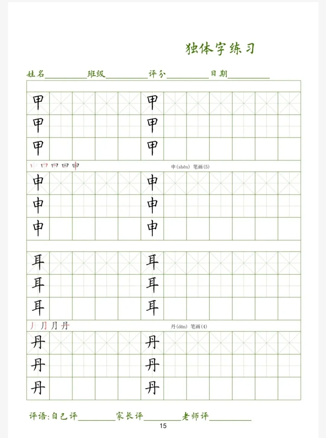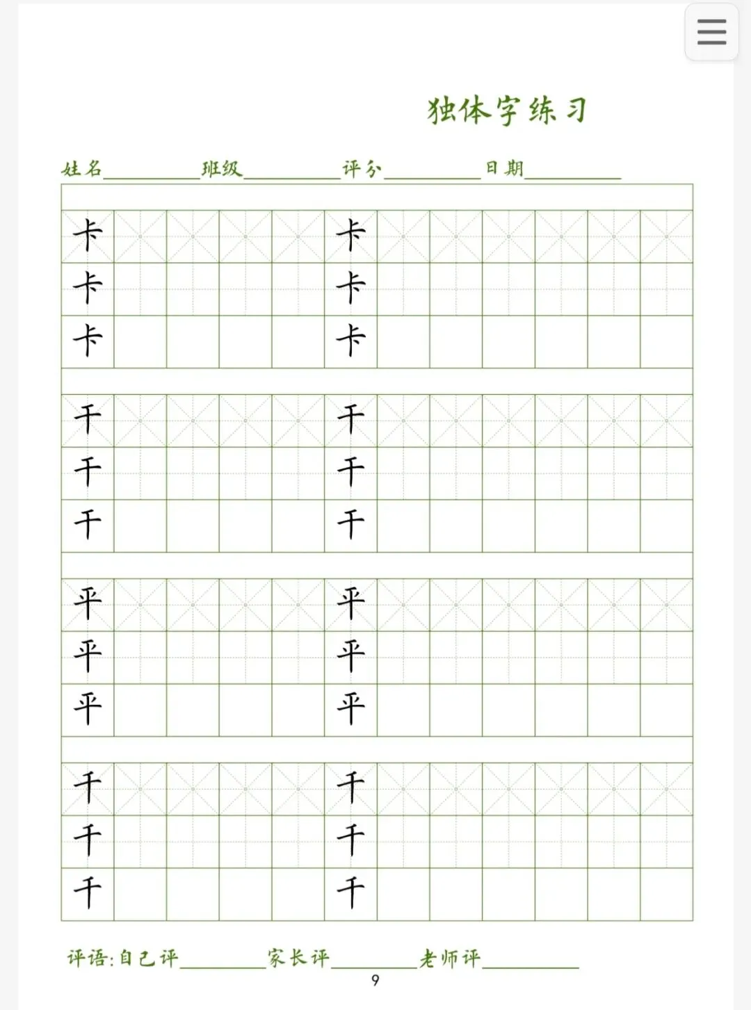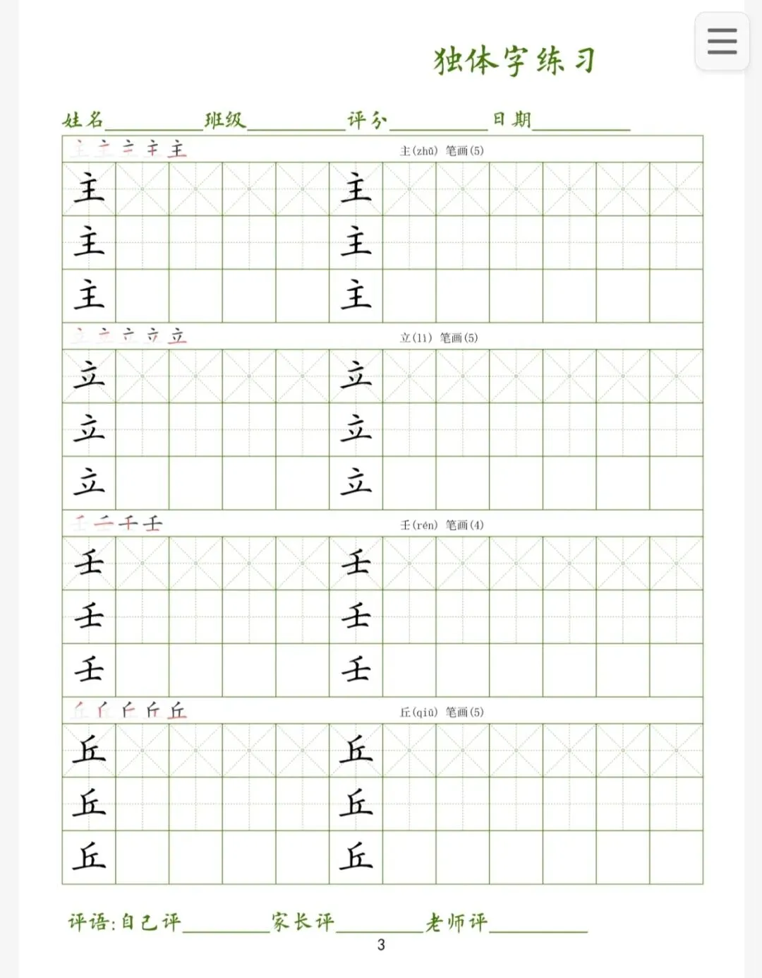 56页独体字练习字帖(电子版字帖、练字免费下载打印)