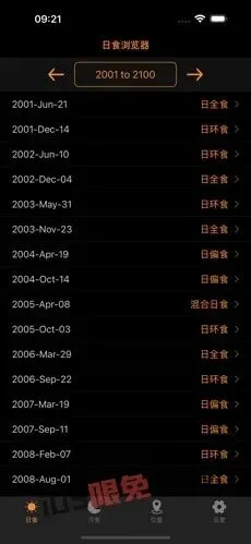 【日月食地图】一款覆盖1999年至3000年间的日食和月食数据,允许用户查询5000年内任意一次日食或月食的发生时间及类型。