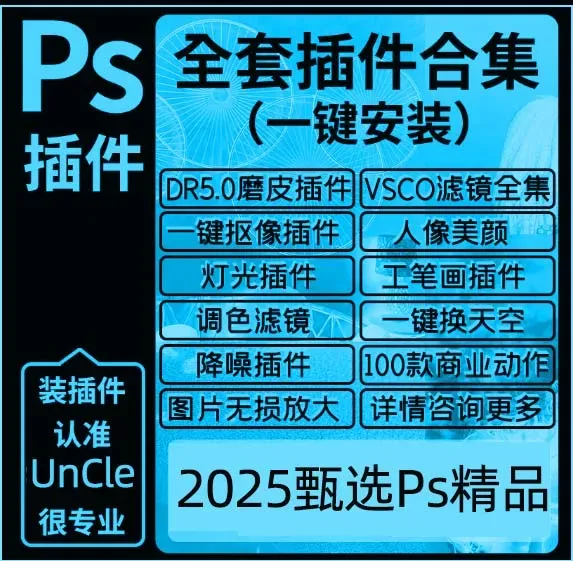 本期大叔带来这套PS插件合集虽然只是一个安装包程序,但包含多个插件套装,是影楼摄影师和职业设计师人手必备的优质Ps插件。