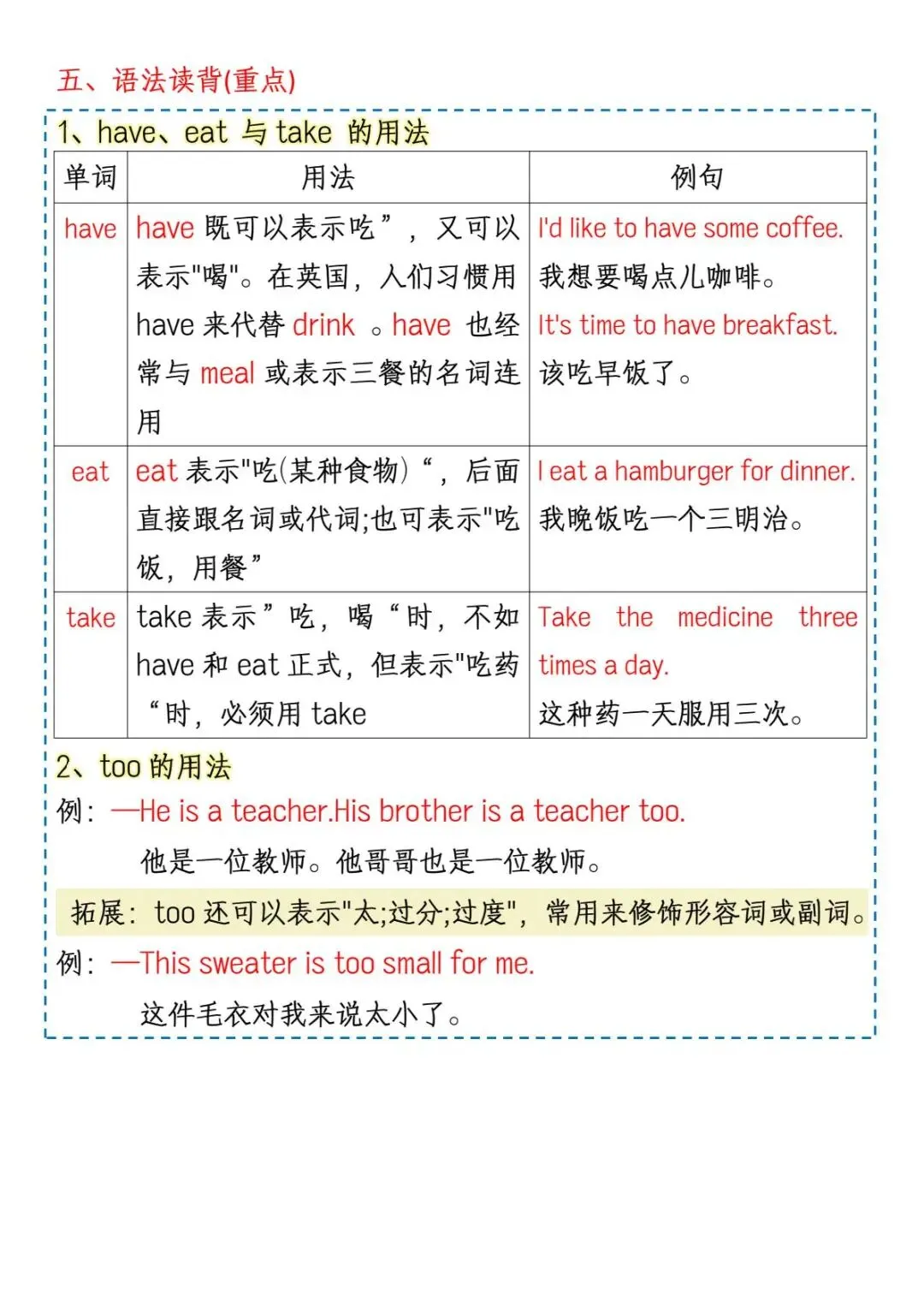 26年新版三年级下册人教PEP版英语《单元知识点总结》,电子版可打印