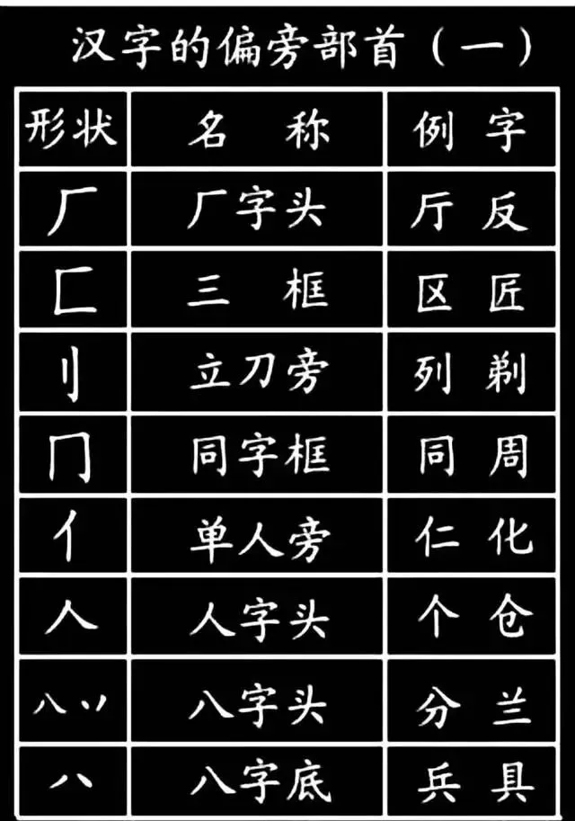 可打印丨小学生必须掌握的1000个汉字基本笔画,偏旁部首! 掌握汉字偏旁部首非常重要。 但现实生活中,很多学生在学习语文的时候,完全不会去考虑一个字的写法的和偏旁部首,家长也并不重视。 孩子学习偏旁部首的意义和用处: 1. 有助于孩子理解字意,分析汉字的结构组成; 2. 对于孩子不知道读音的、不认识的字,需要用部首查字法; 3. 帮助识字。语文考试常见的一道题:换偏旁,组新字,再组词。 ——END—— ▍来源:网络。本公众号尊重原创,好的内容值得分享,如有侵权请联系删除。本文图片均来自网络