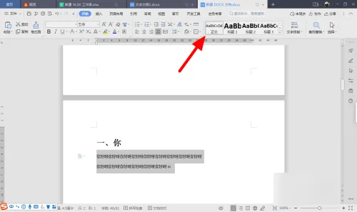 2、选中正文内容设置为正文,将所有正文如此设置。