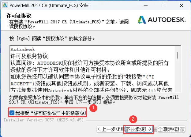 20、回到PowerMill 2017文件夹,找到【xf-adesk】程序,右键选择【以管理员身份运行】它