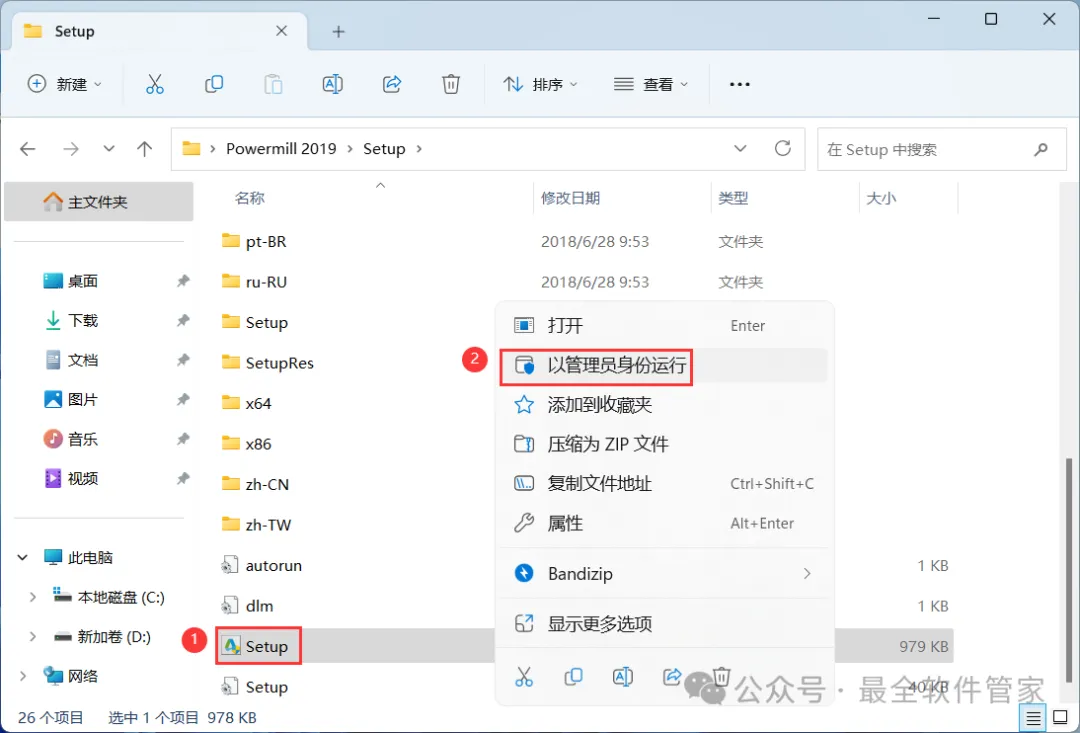 4、找到【Setup】应用程序,右键选择【以管理员身份运行】它