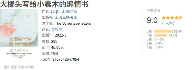这本书是C. S. 路易斯受欧美读者瞩目的第一本畅销书,出版于1942年。这本书的体裁是书信体小说,最初的内容连载于报刊,后集结成书。
