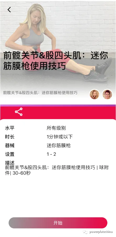 与此同时,Power Plate今年推出的新品mini筋膜枪,我们也在APP内详细地向大家介绍对于此款新产品的使用技巧,在身体的各个部位(如肱二头肌、胸肌、前髋关节等)使用方法,轻便简单易操作,让用户能在工作与闲暇时间随时随地进行肌肉放松。