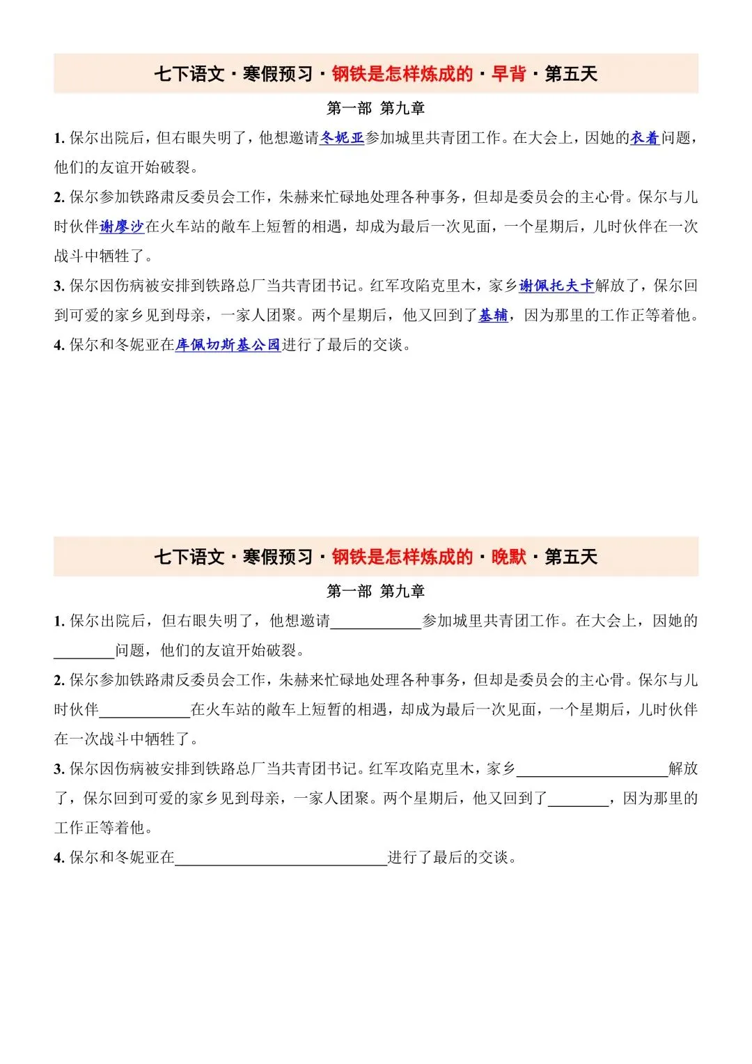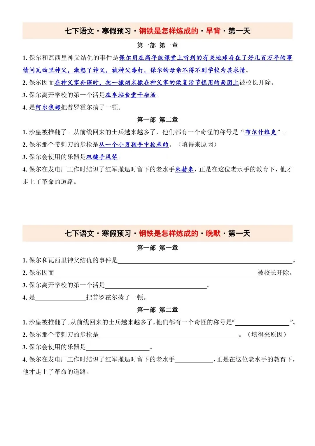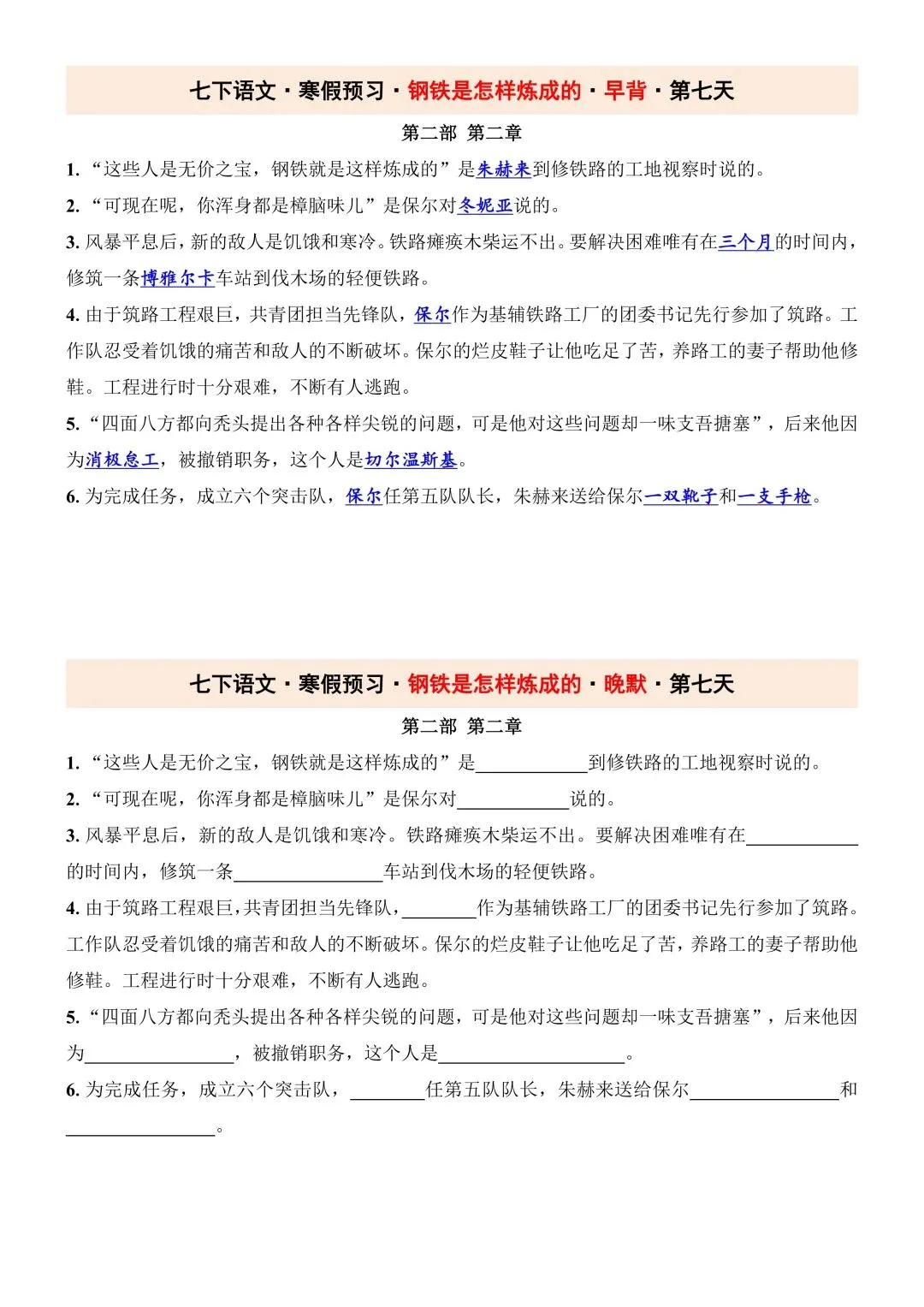 26年春人教(部编版)初一七年级下册语文寒假预习《钢铁是怎样炼成的》早背晚练(共12页)丨高清电子版可打印(203)