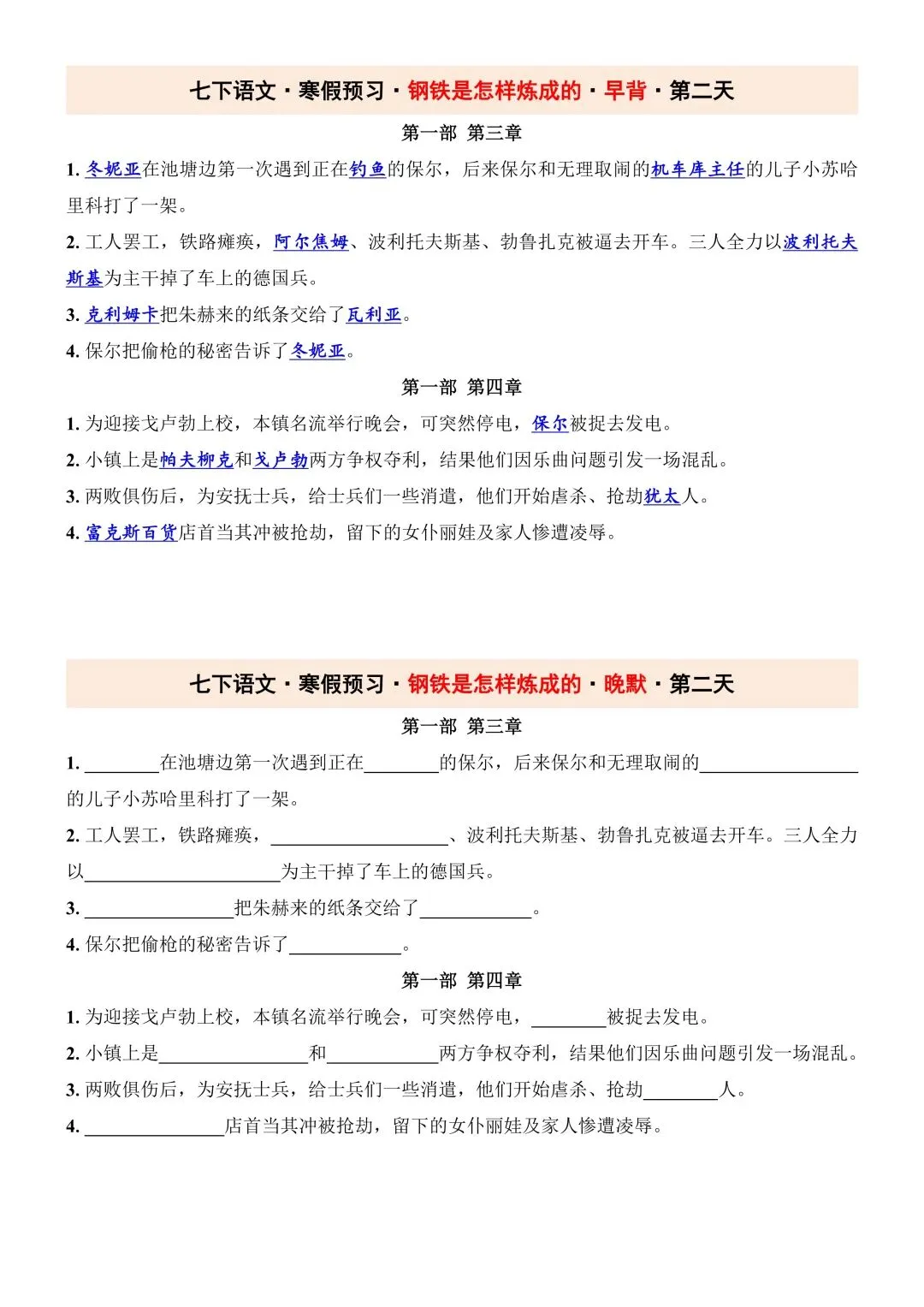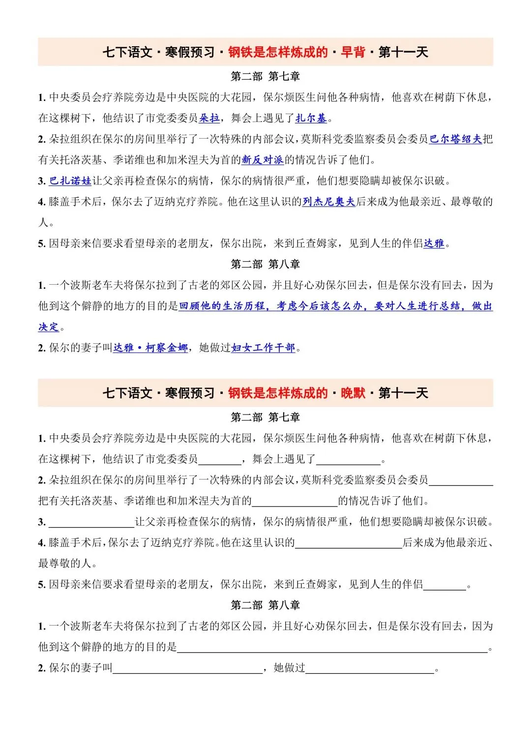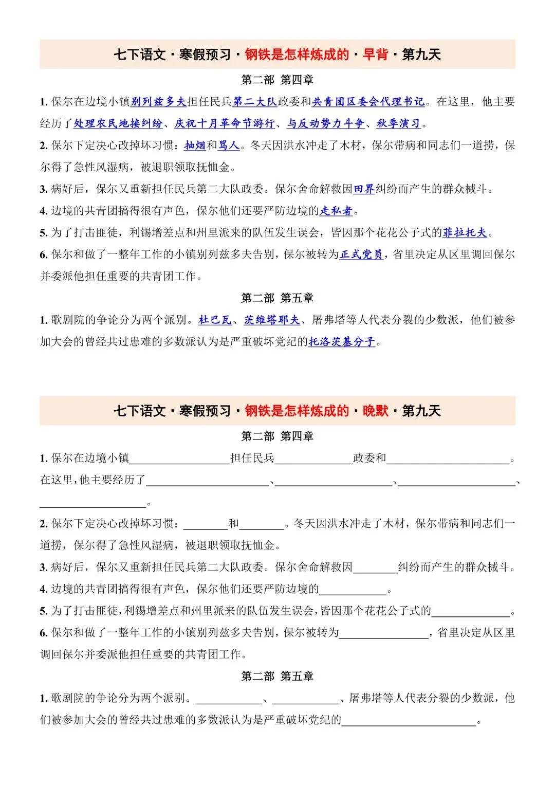 26年春人教(部编版)初一七年级下册语文寒假预习《钢铁是怎样炼成的》早背晚练(共12页)丨高清电子版可打印(203)
