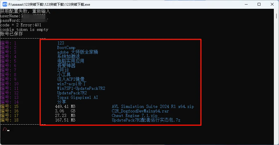 4.输入对应的序号即可打开文件夹或者下载文件,可以看到下载速度很快