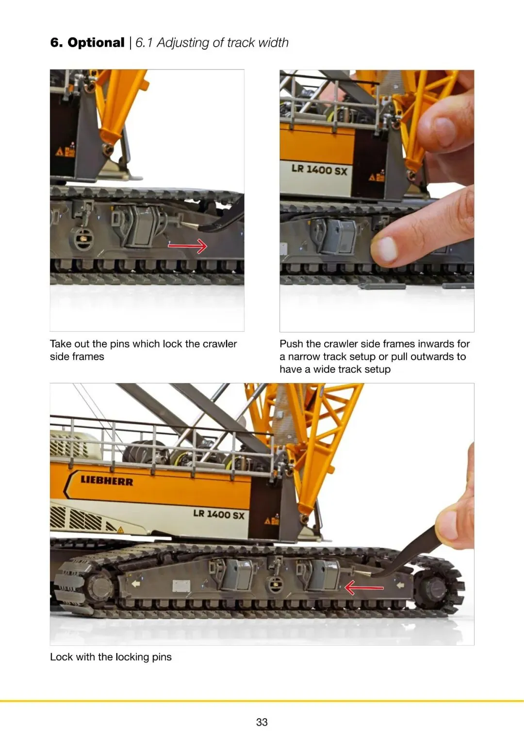 模友们,又到了分享电子版模型说明书的时刻了!本文我们分享的是WSI模型利勃海尔LR1400 SX模型说明书!利勃海尔LR1400 SX是一款最新的400吨履带吊。在利勃海尔的官网上,很霸气的注明,LR1400 SX在其重量级别中的新任冠军,专为地上和地下工程中的各种挑战而设计。利勃海尔LR1400 SX模型说明书,共35页!以下,就是说明书详细内容!