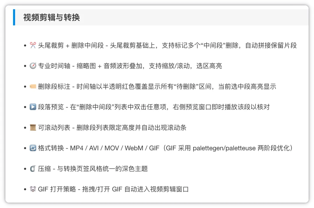 今天汤主给大家分享的是这款免费开源多功能截图录屏工具「PixWit」它不仅仅集成基础截图能力:单屏快速截图、历史记录、丰富标注、桌面贴图;而且支持录制视频,全屏/区域录屏、暂停/恢复、录制完成提示;内置视频裁剪、删除中间段、压缩与格式转换(含 GIF)。