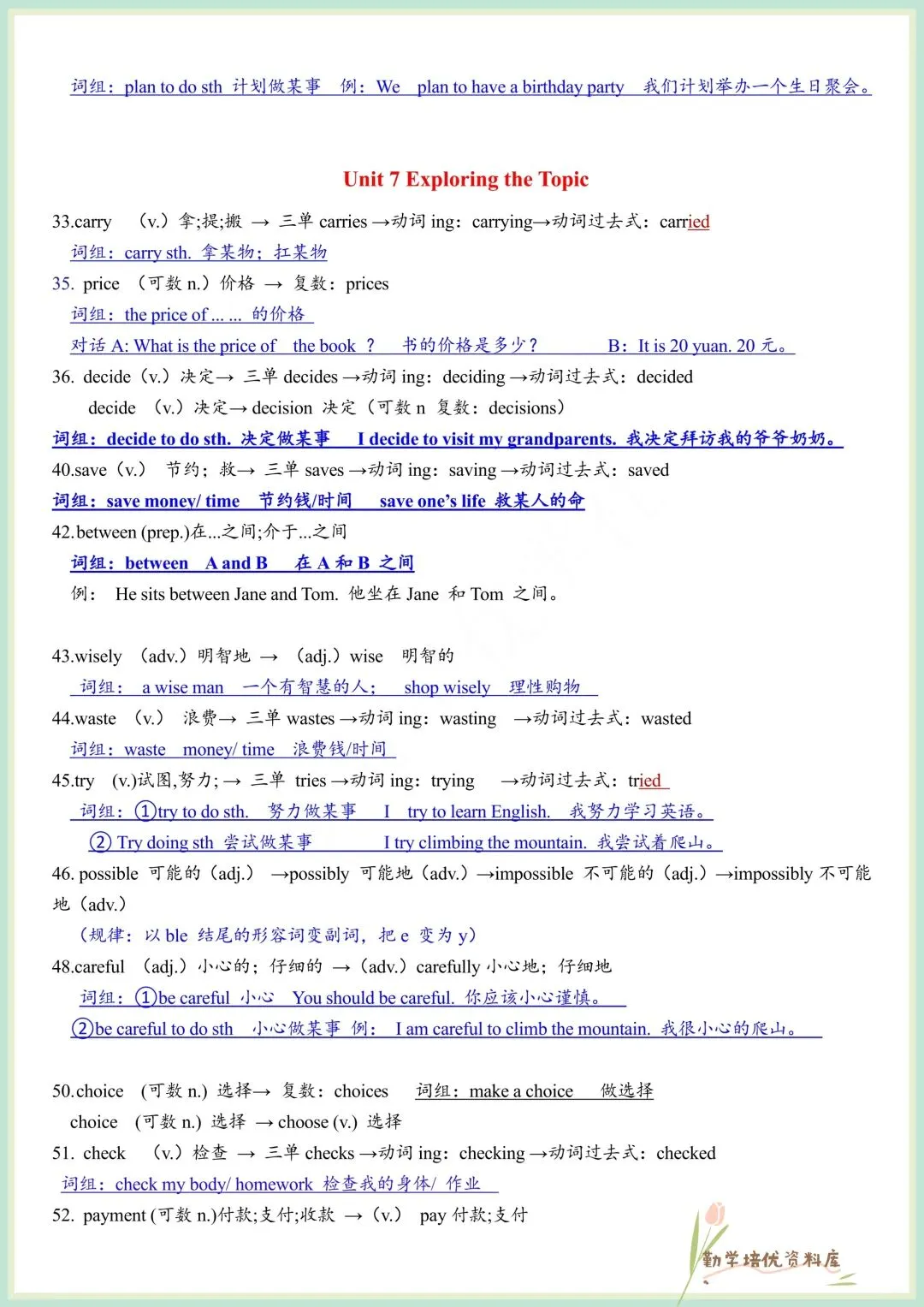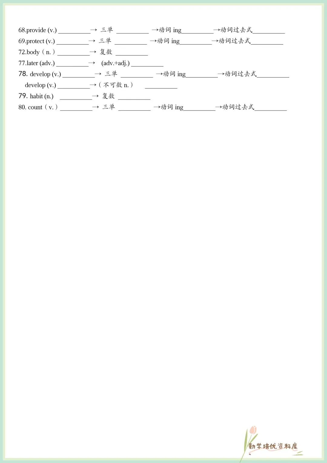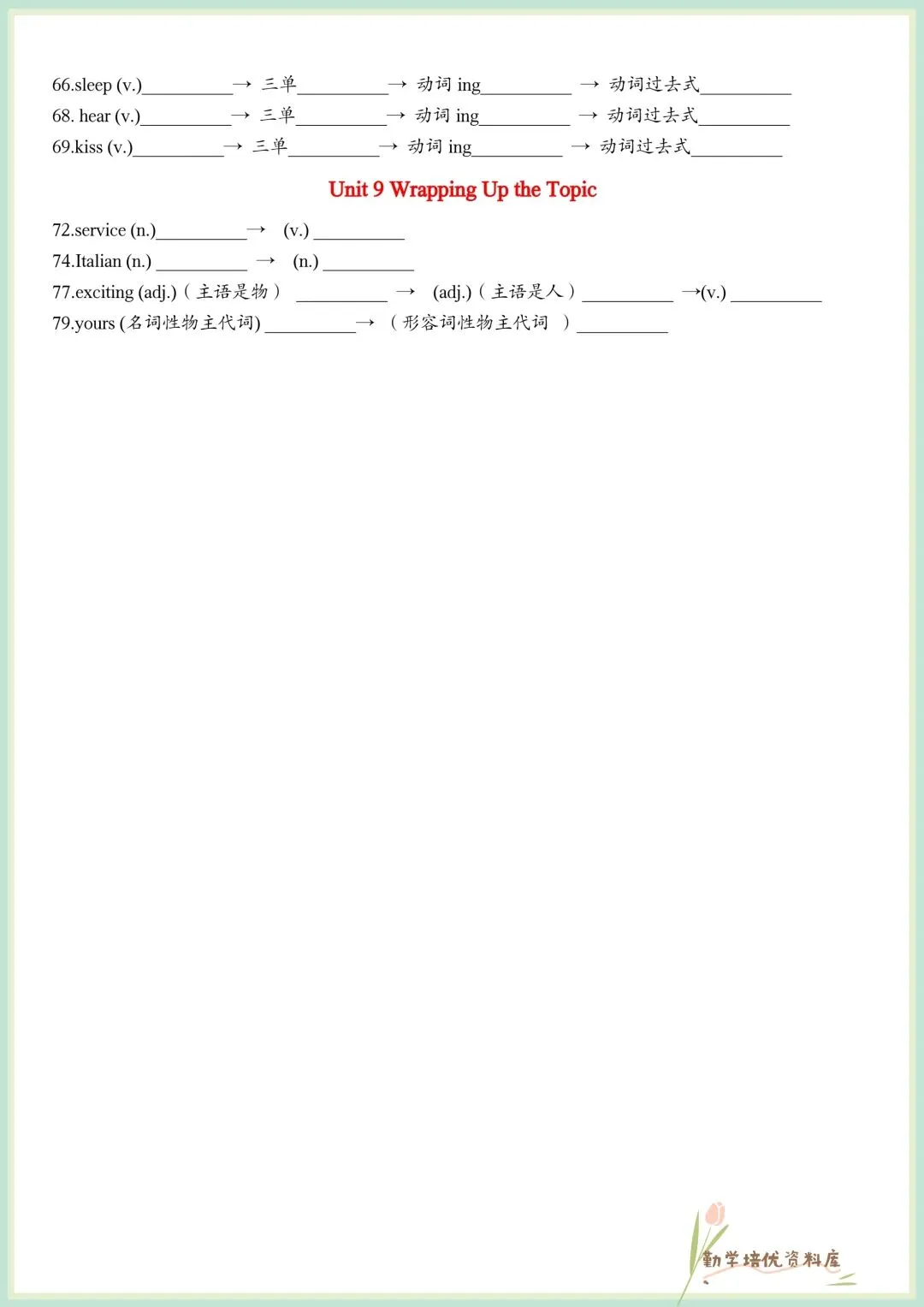 今日老师精心给大家整理了:2026春新(仁爱版)七年级下册英语单词词性变形挖空(默写版+答案版),电子版可下载打印!
