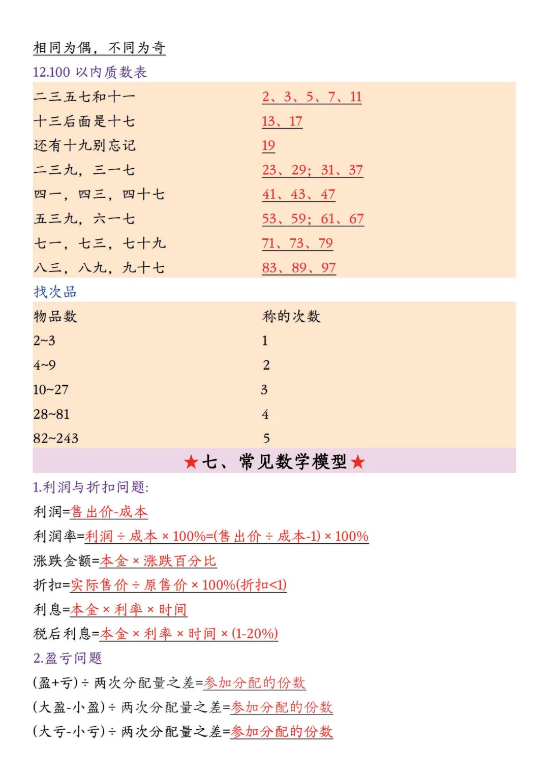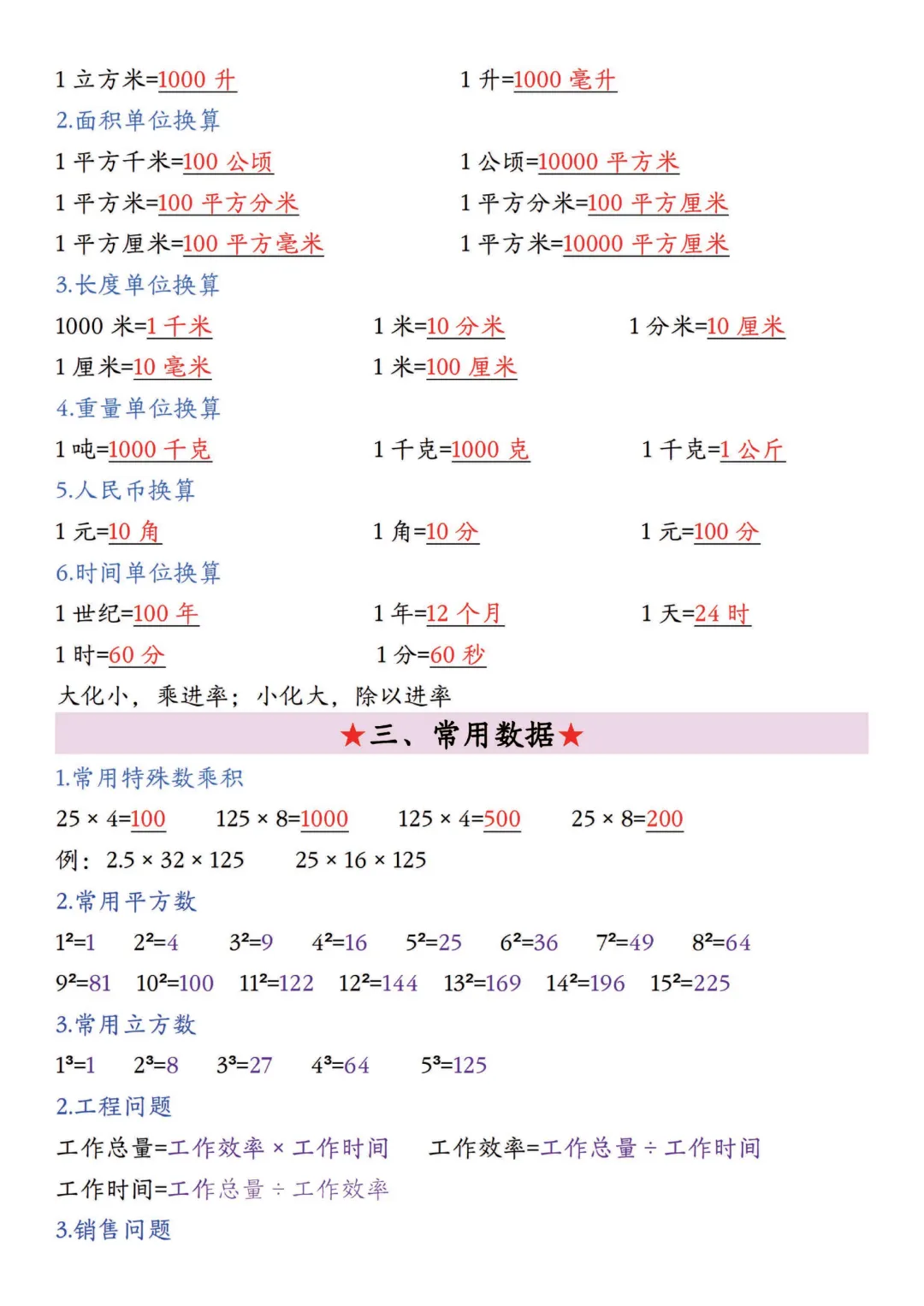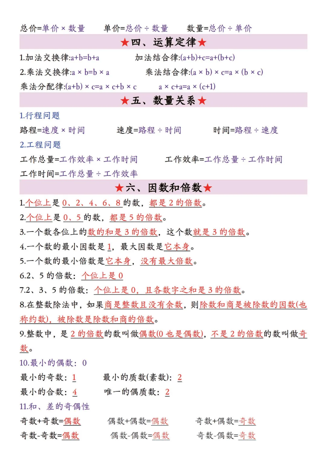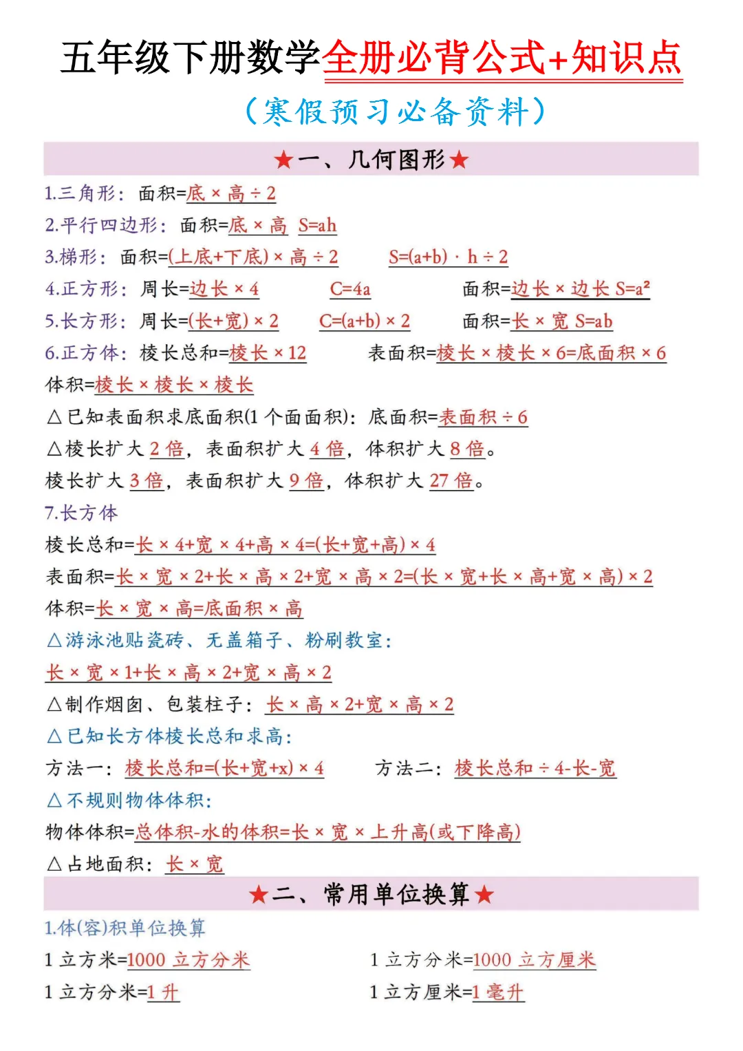 五年级下册数学全册必背公式大全,电子版打印寒假预习背一背~