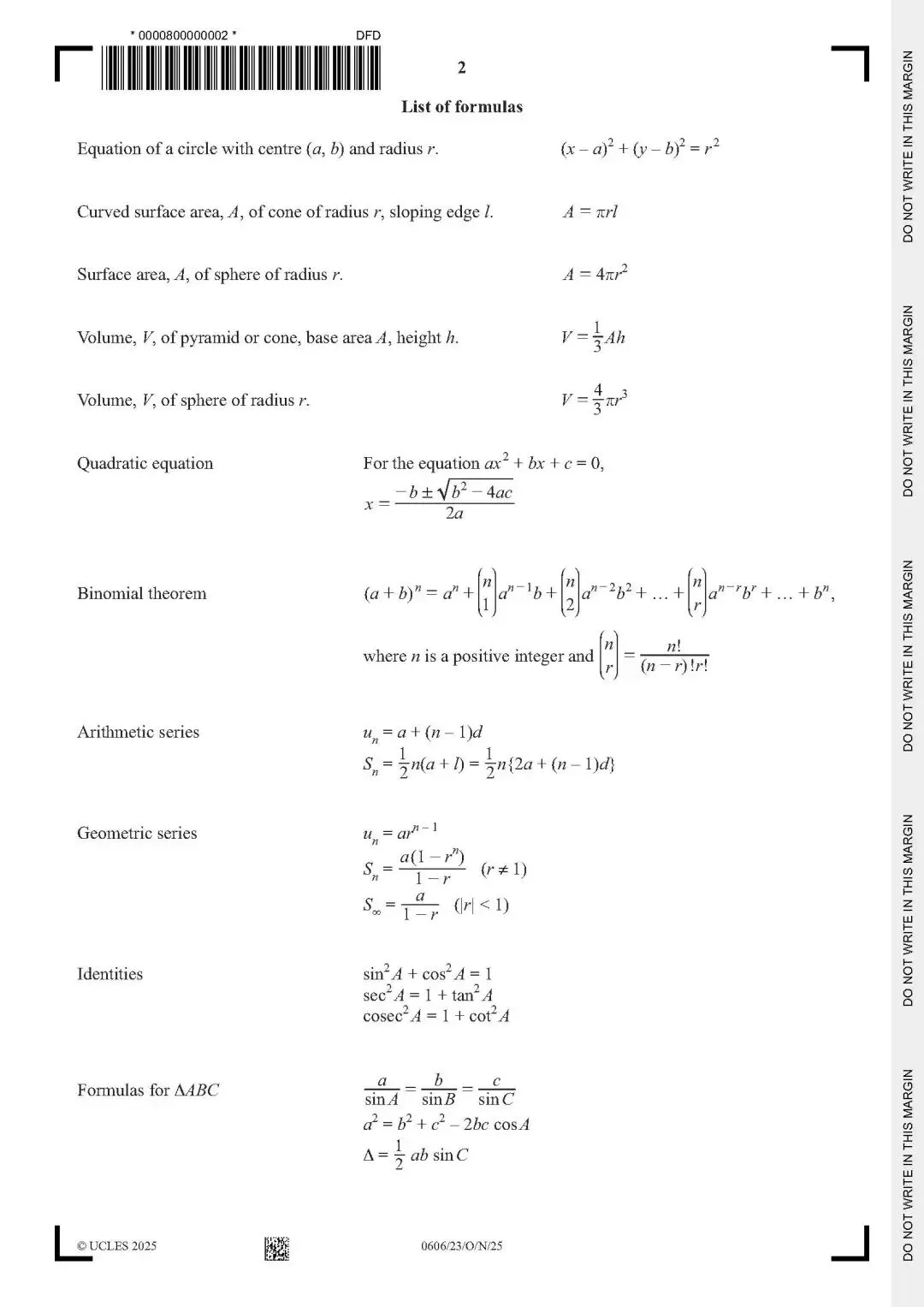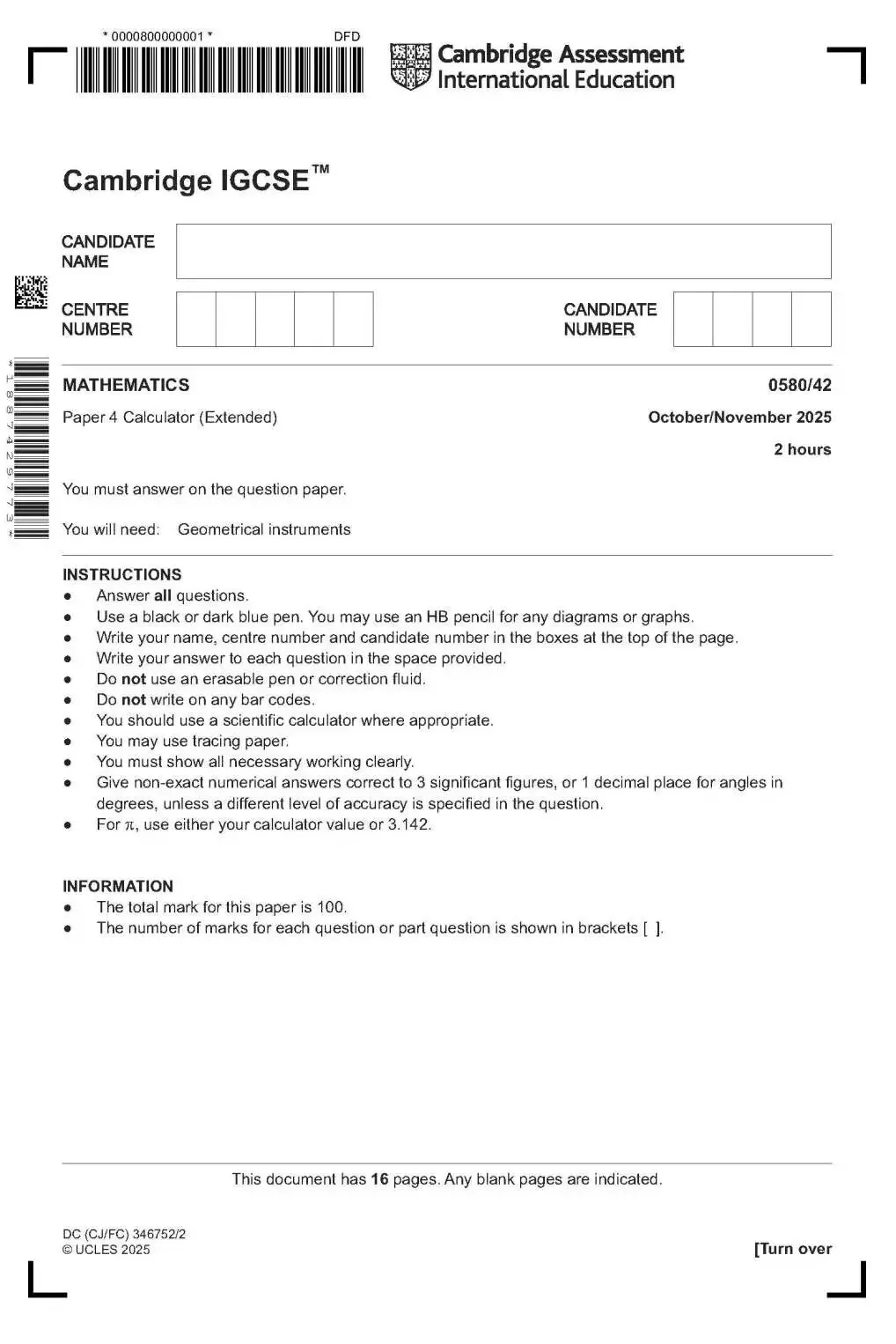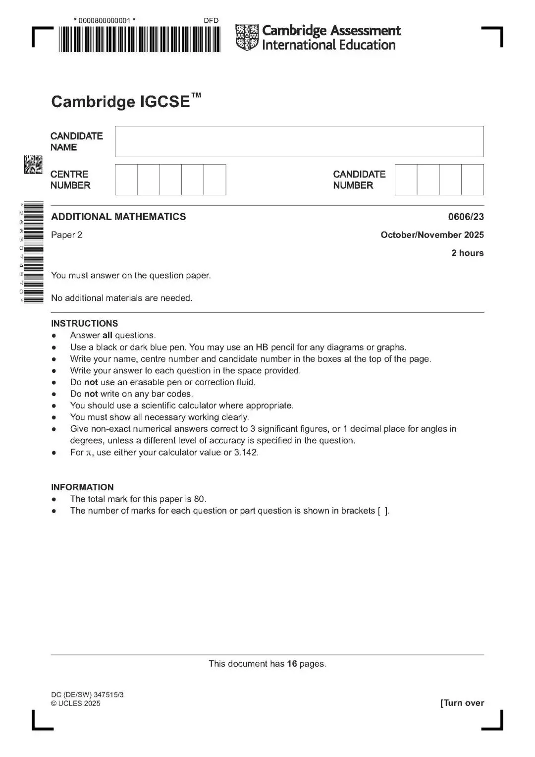CAIE考试局IGCSE数学历年真题PDF,包含0580和0606,高清可打印