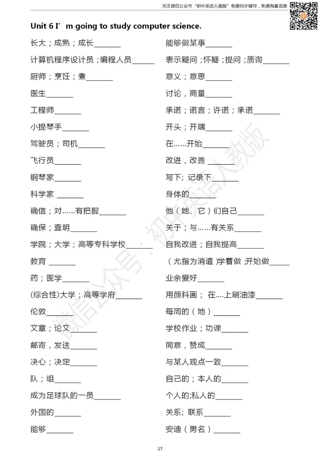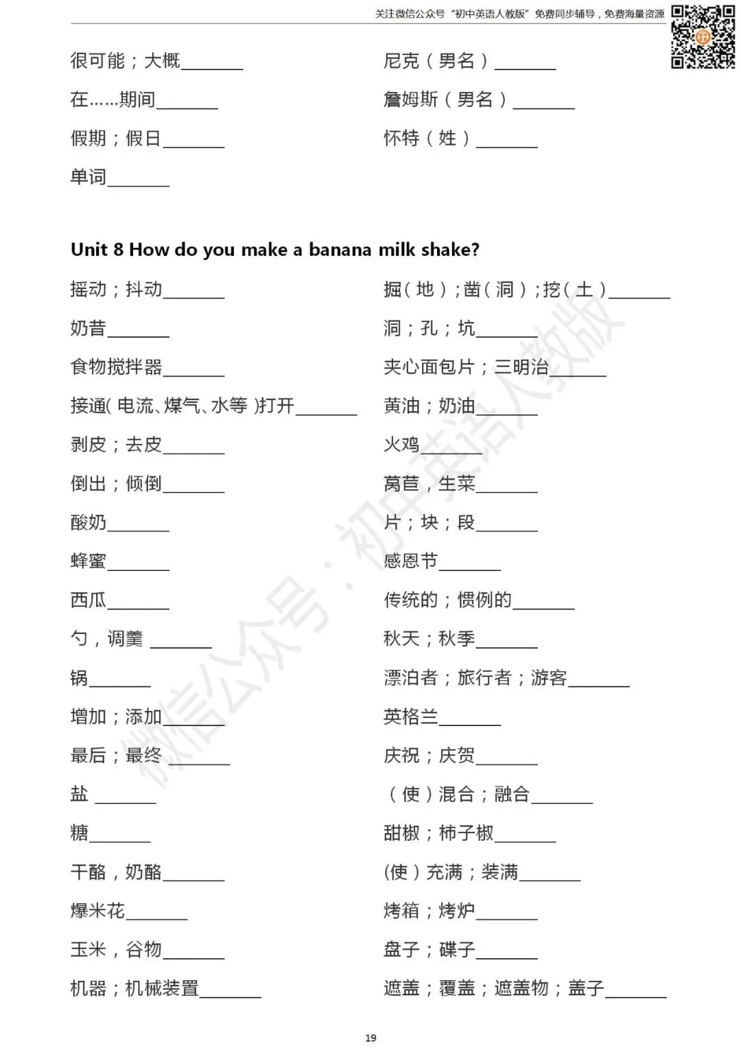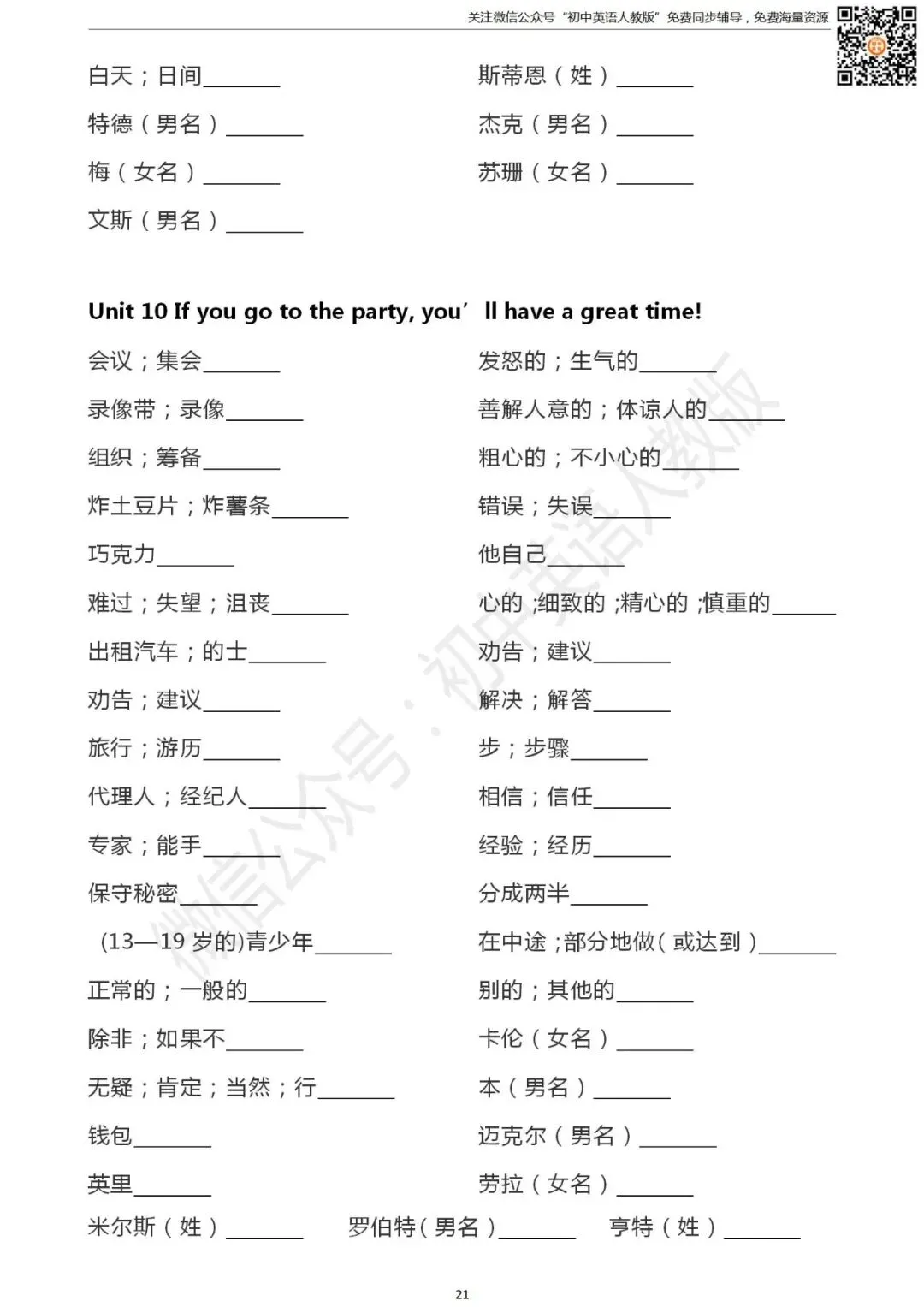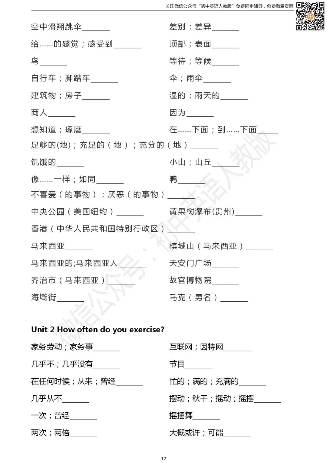 长按二维码关注 “初中英语人教版”