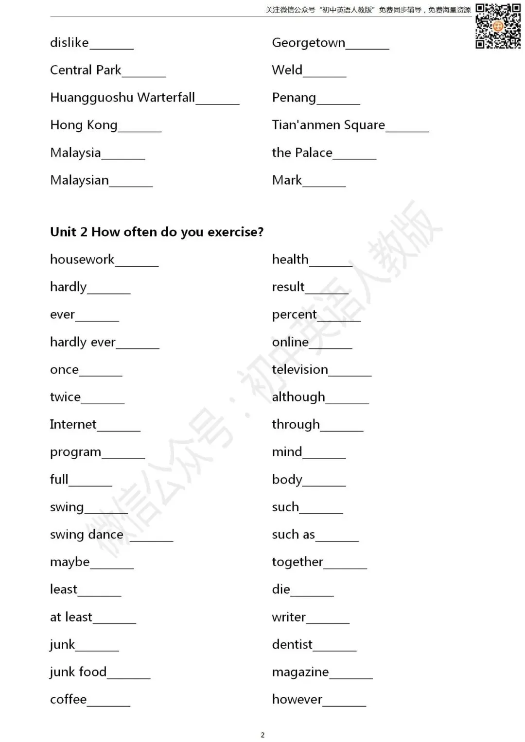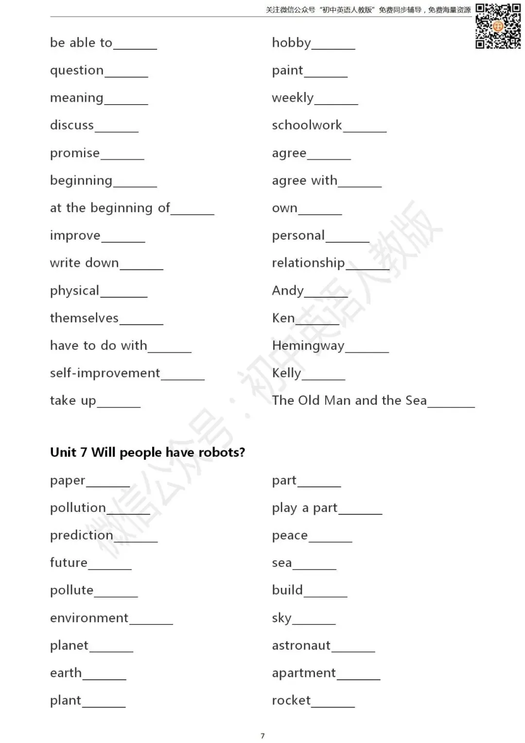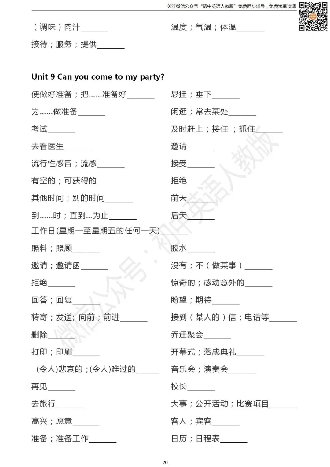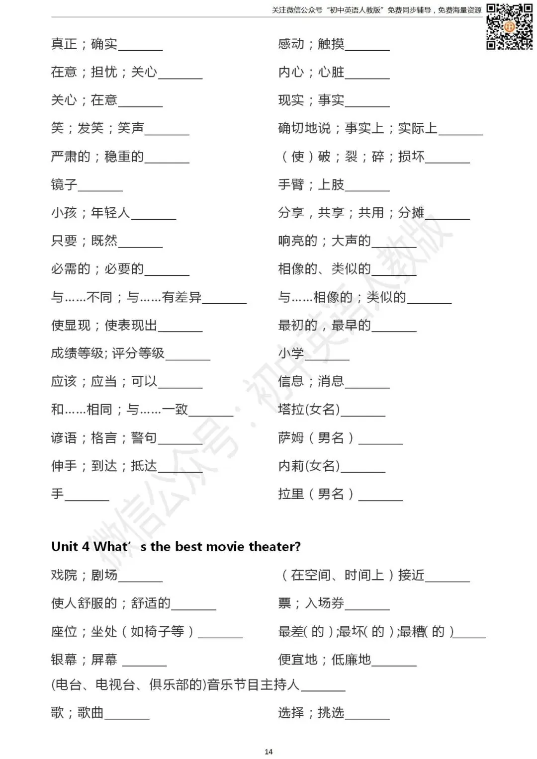 长按二维码关注 “初中英语人教版”