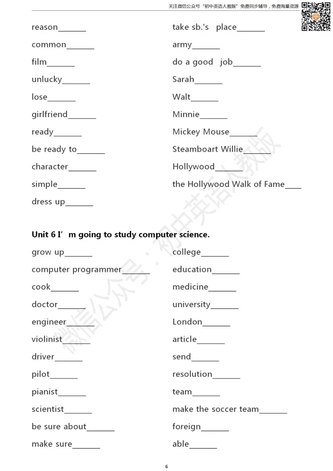 如需要电子文档,请在后台发消息”单词默写表”