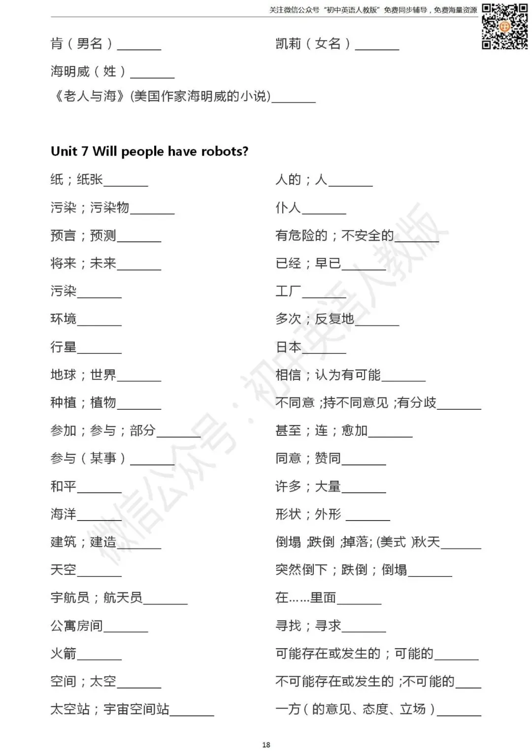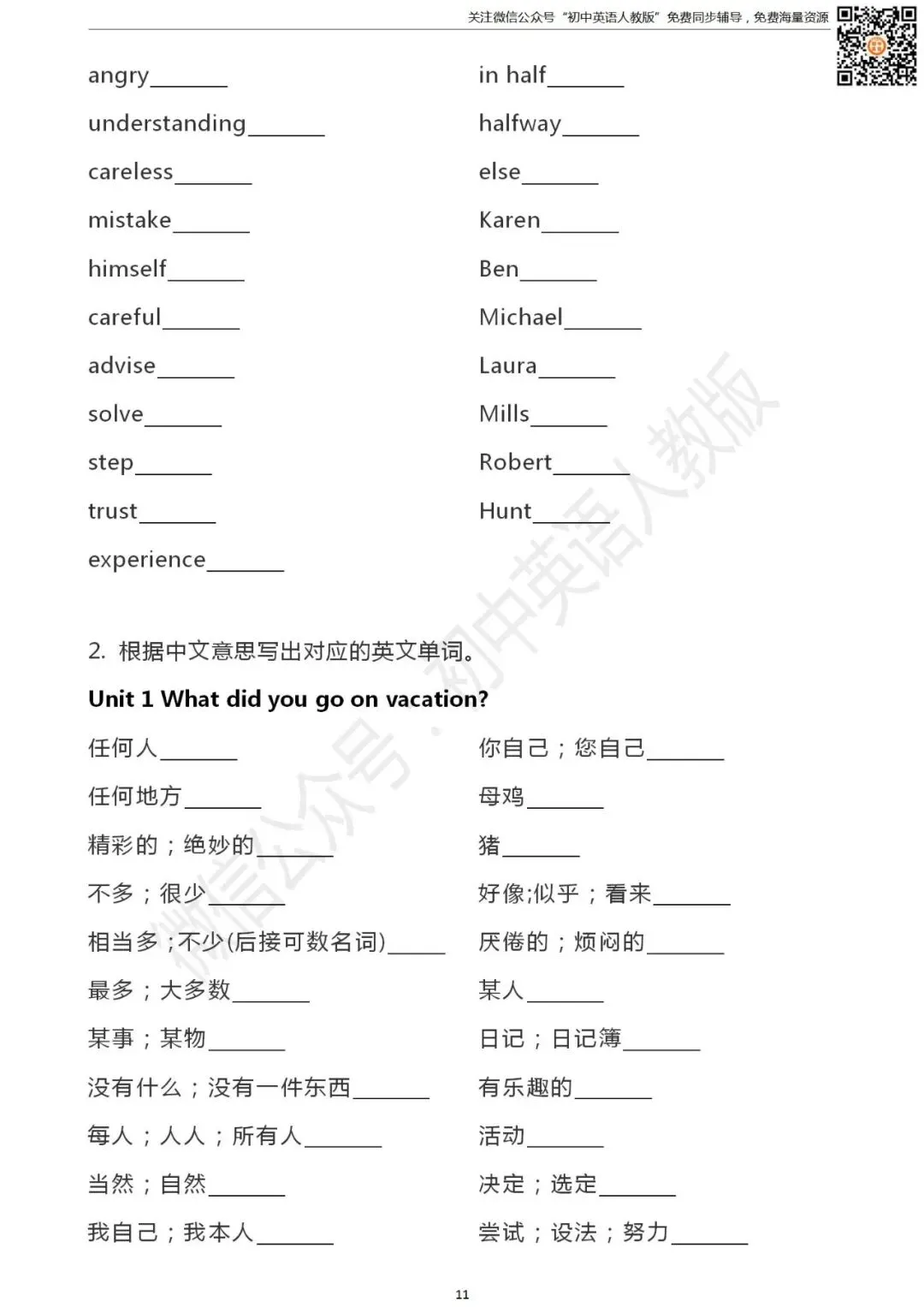长按识别二维码关注 “初中英语人教版”
