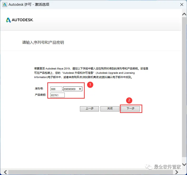 16、序列号输入:666-69696969,产品密钥输入:657K1,再点击【下一步】